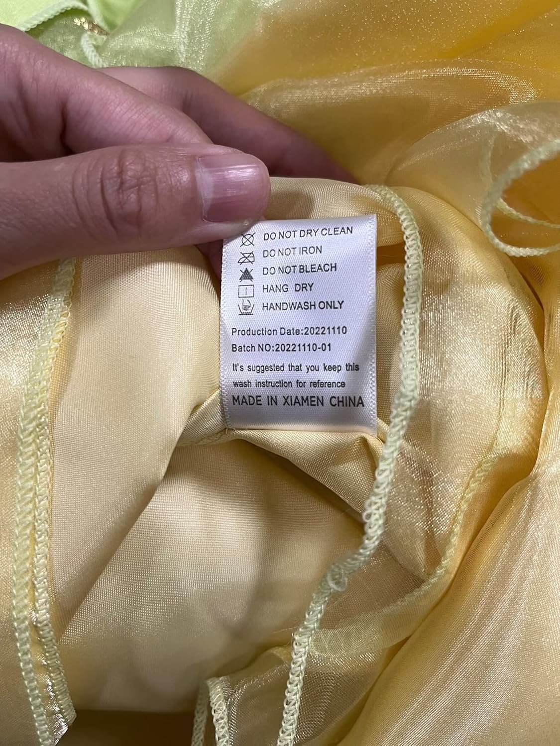 The organza overlay shimmers with golden floral motifs, while a breathable cotton lining keeps delicate skin comfortable.