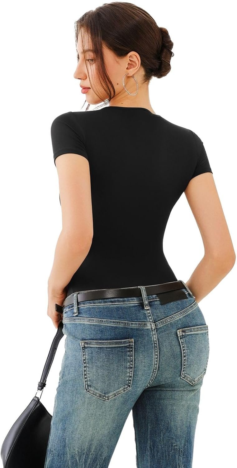 The video showcases the product in use.The video guides you through product setup.The video compares multiple products.The video shows the product being unpacked. Short Sleeve Bodysuits for women Merchant Video
