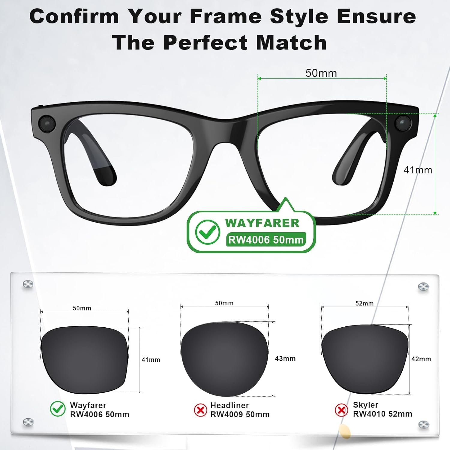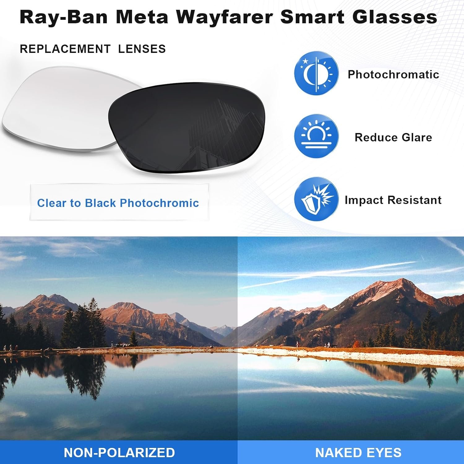 Replacement Lenses Compatible with Ray-Ban Meta Wayfarer RW4006 50mm Smart Glasses for Women Men-Non/Polarized Lenses