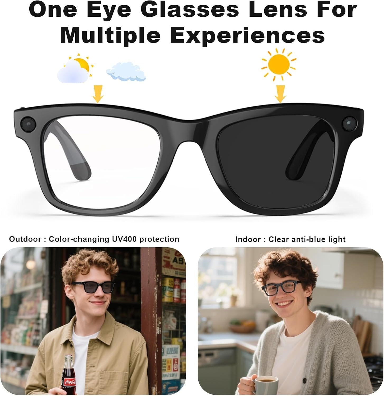 Smart Tint Transition: Seamlessly shifts from clear indoors to dark sunglasses outdoors—ideal for driving, travel, or beach days.