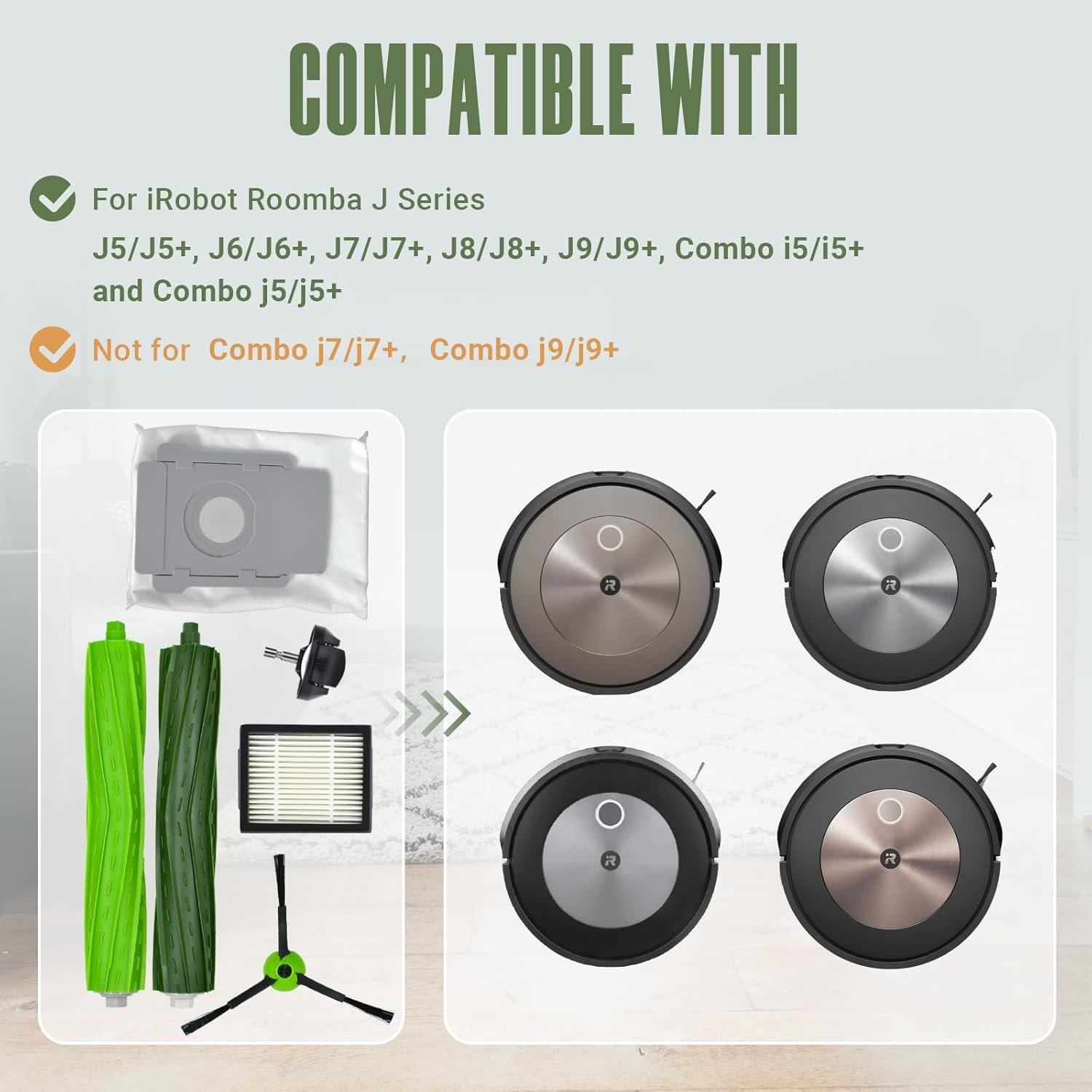 Fit Well: The replacement parts works great fit for iRobot Roomba J Plus series J5+ J6+ J7+ J8+ J9+ Combo i5+, Combo j5+ robot Vacuum Cleaner, while NOT for Combo j7/j7+,Combo j9/j9+