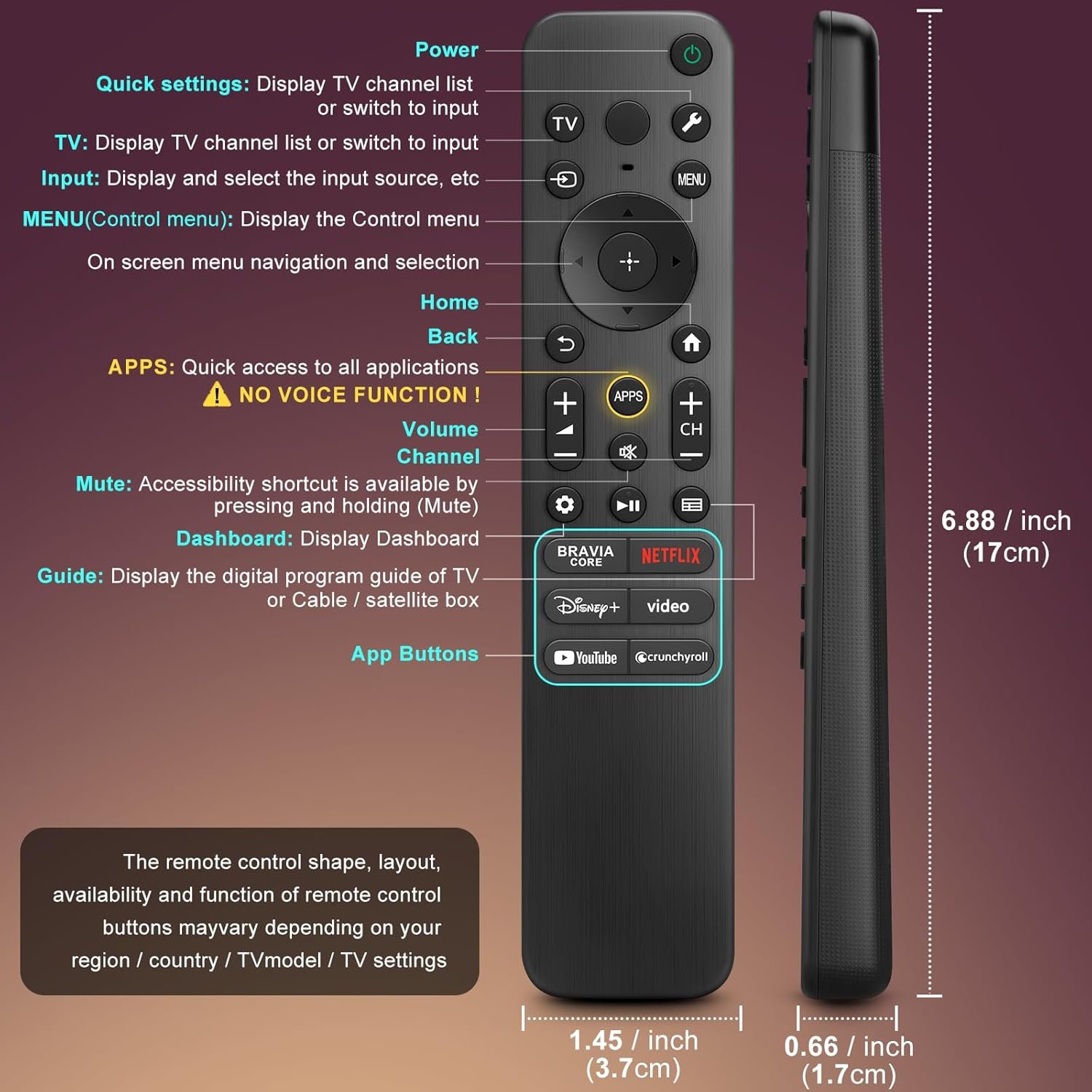 Wide Compatibility This upgraded remote control is designed to work seamlessly with a wide range of Sony Bravia Google TVs, including popular models like BRAVIA 3, BRAVIA 7, BRAVIA 8, BRAVIA 9, X90L, X90CL, X93L, X93CL, X95L, A75L, A80L, A80CL, A95L, and more.
