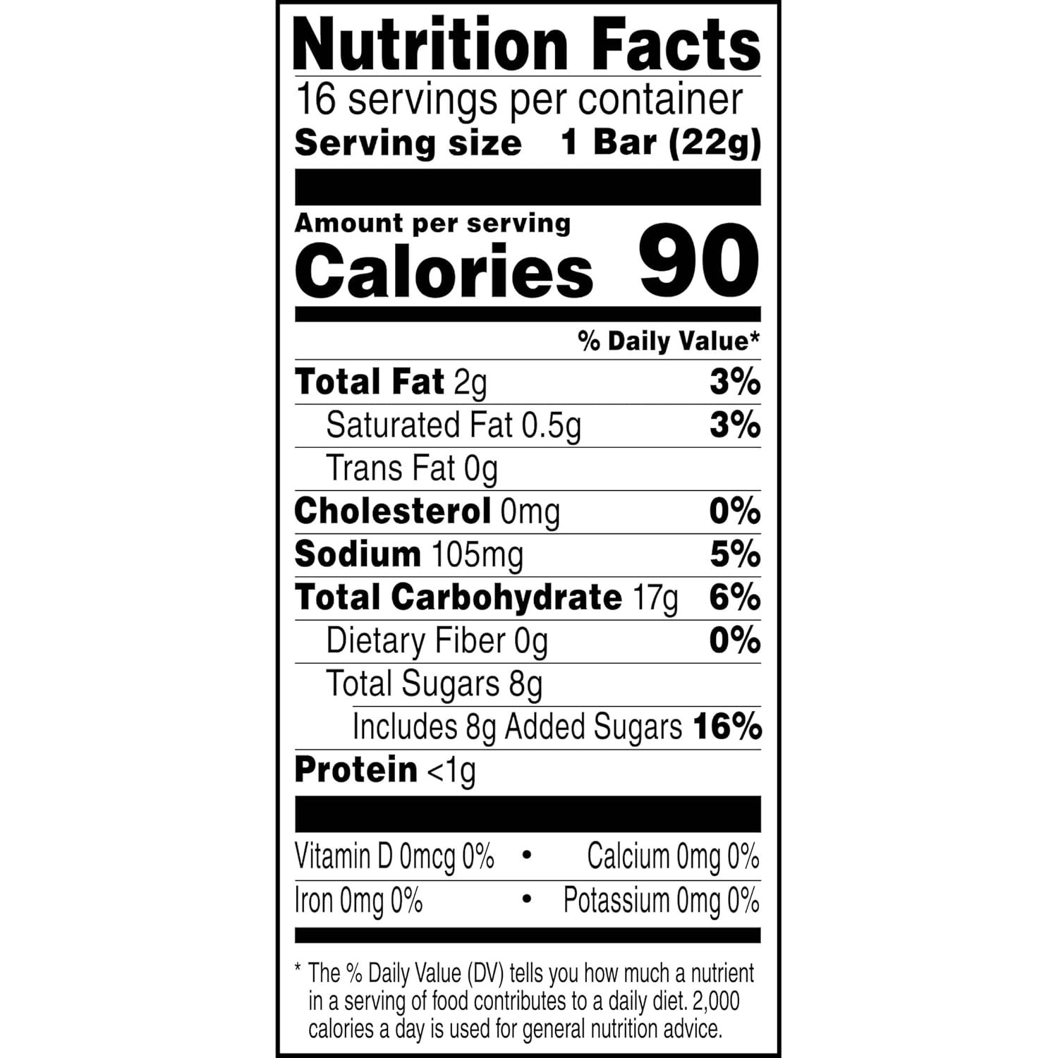 Discover sweet flavor and crispy texture; Only 90 calories per bar; No high fructose corn syrup; Contains milk and soy ingredients