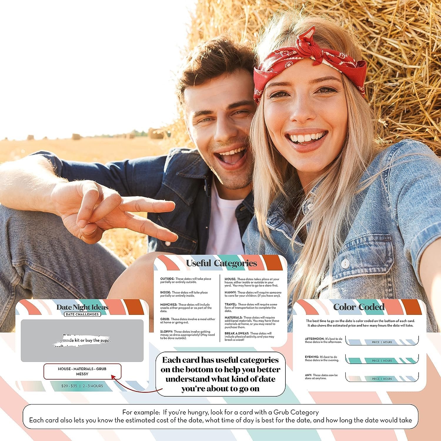 KEEP DATE NIGHTS EXCITING: There’s a good chance you remember the exact moments that led you to going on your first date with your partner. Remember the excitement & happiness that you felt that day? As your relationship matures it’s very important to keep things fresh and exciting. The purpose of these cards is to do exactly that. To bring excitement and happiness into your relationship with these fun and adventurous date ideas.