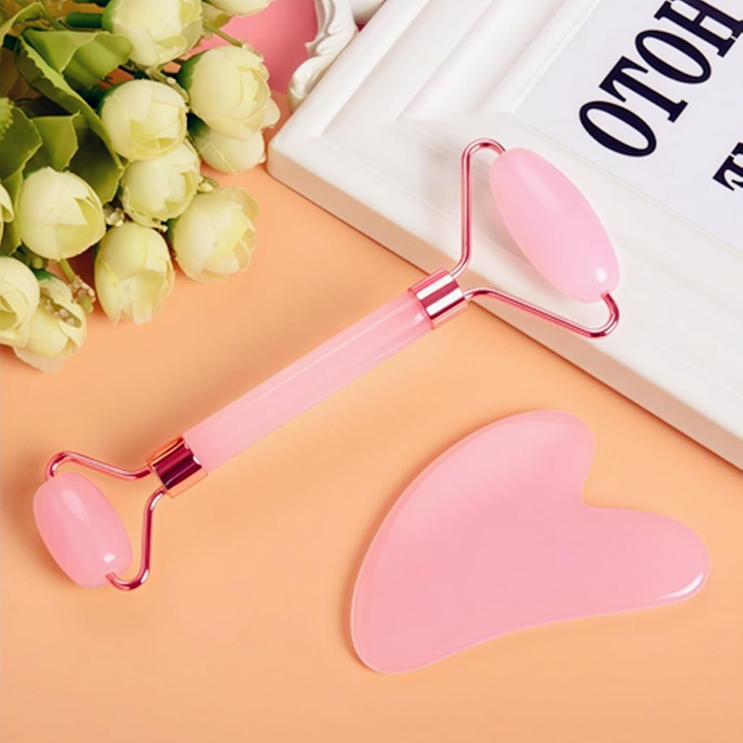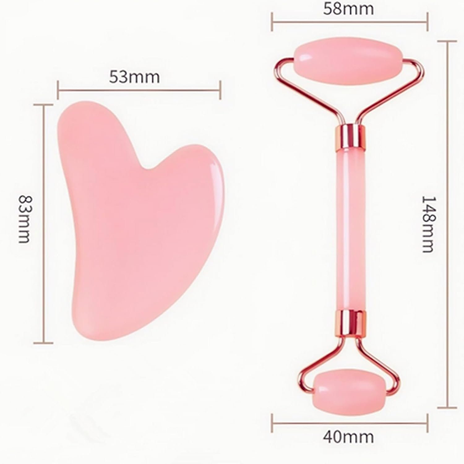 Includes 2 pieces – a dual-ended rose quartz facial roller and a heart-shaped gua sha stone for comprehensive facial massage and skincare routines