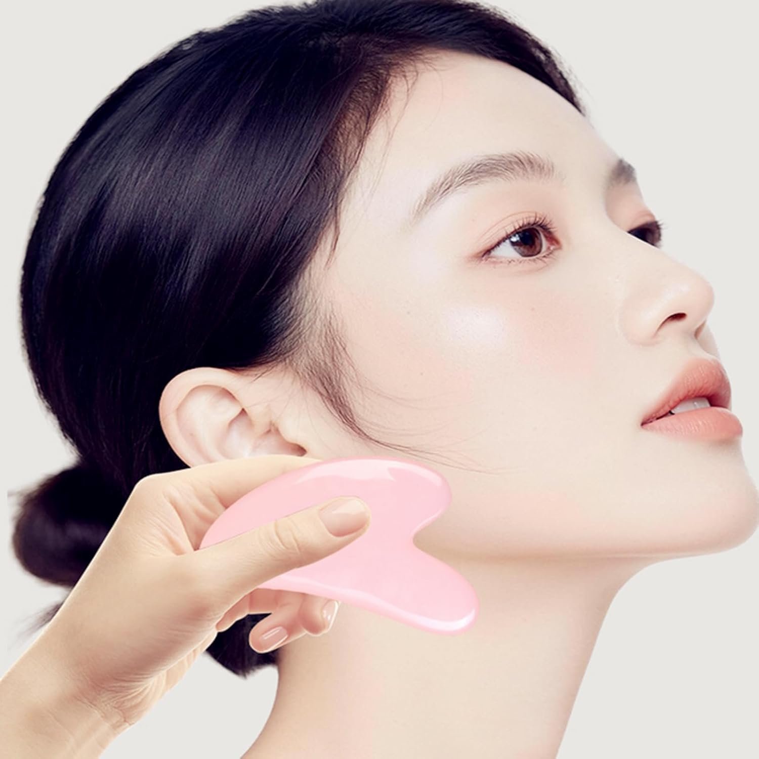 Heart-shaped scraping stone with multiple curved edges designed to contour facial features, and enhance product absorption during skincare application