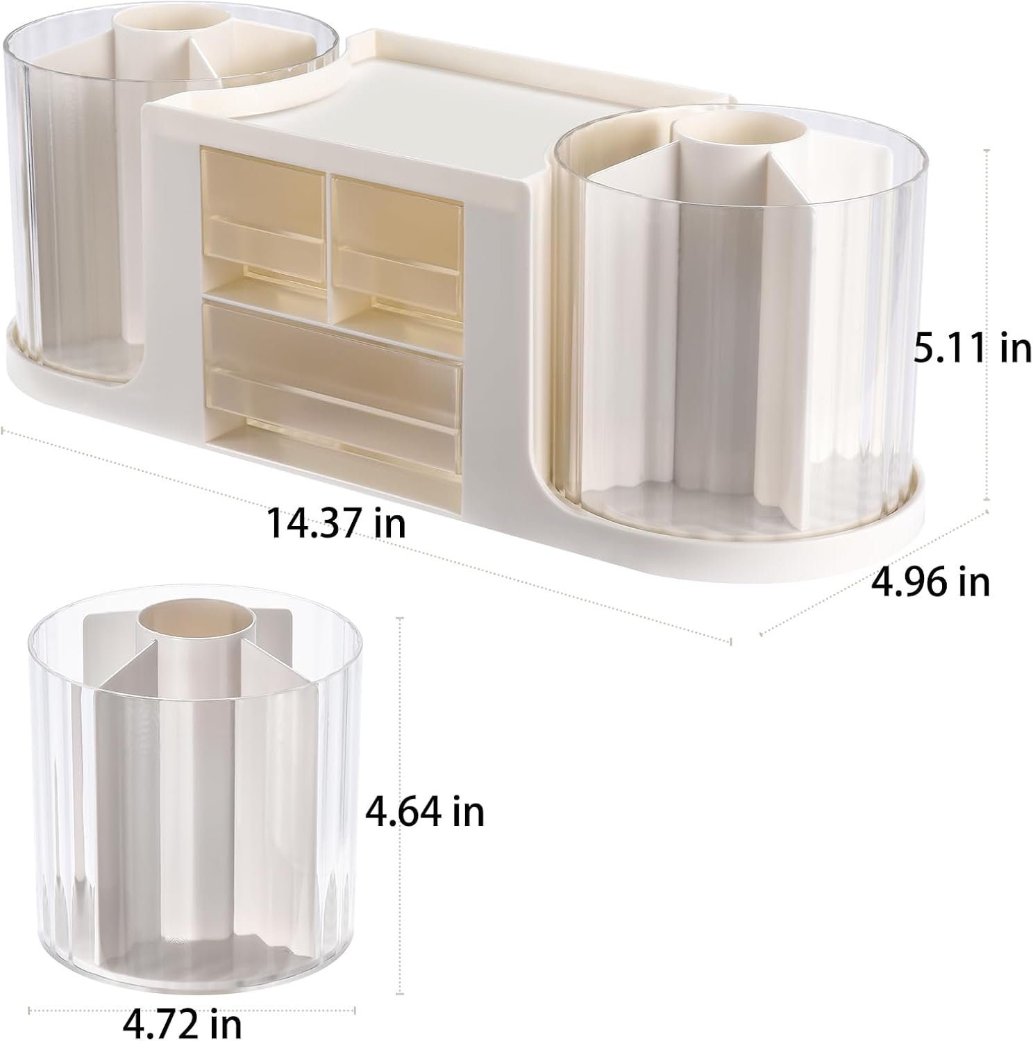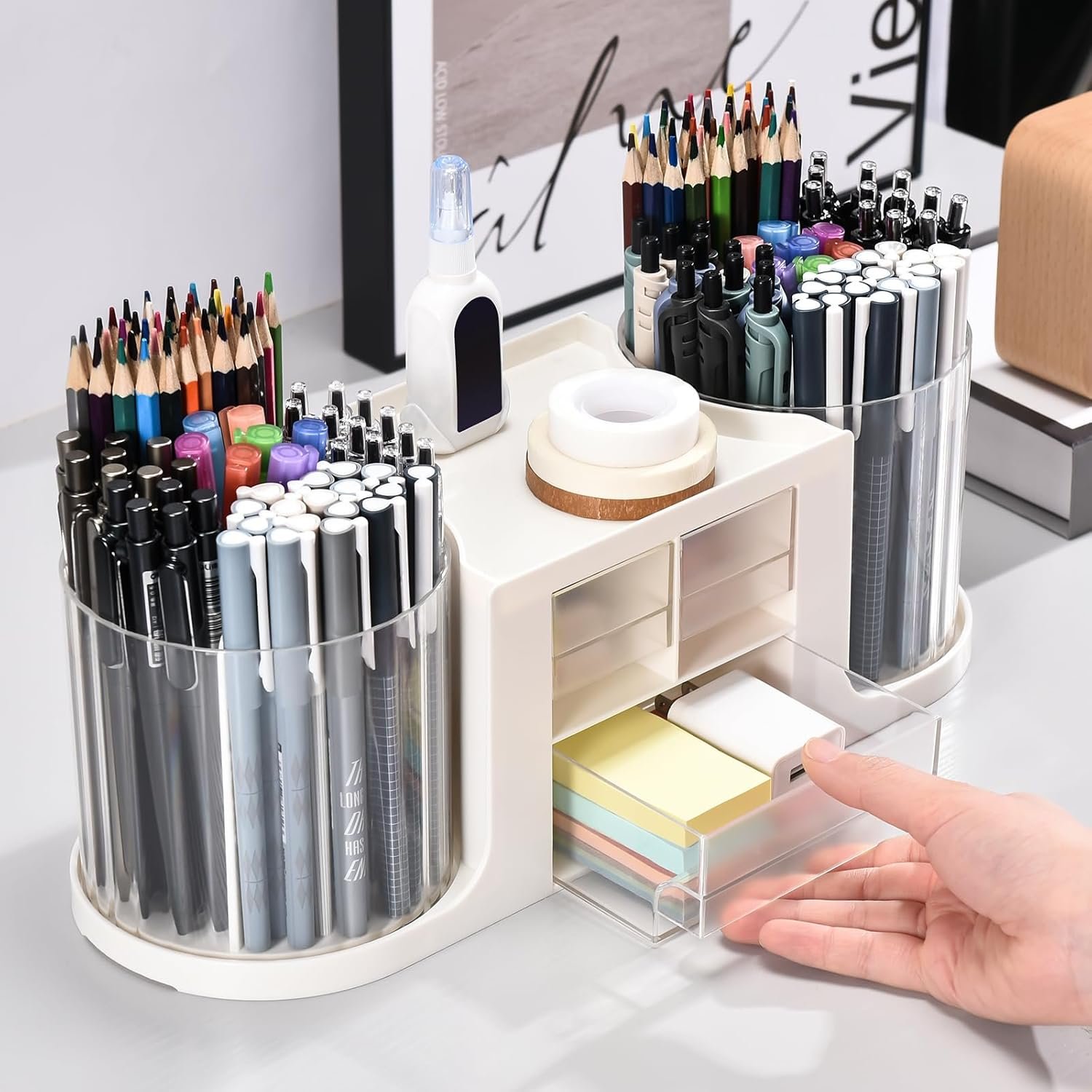 KLIONGO Desk Organizer with Two Rotating Pen Holders and Three Desk Drawers