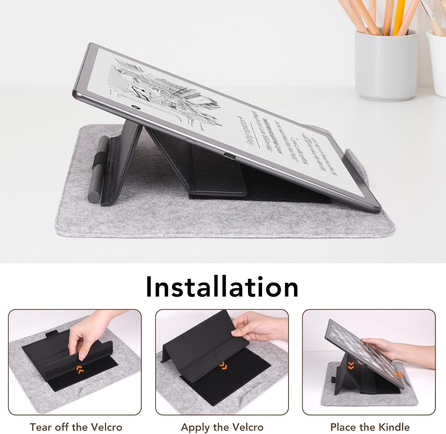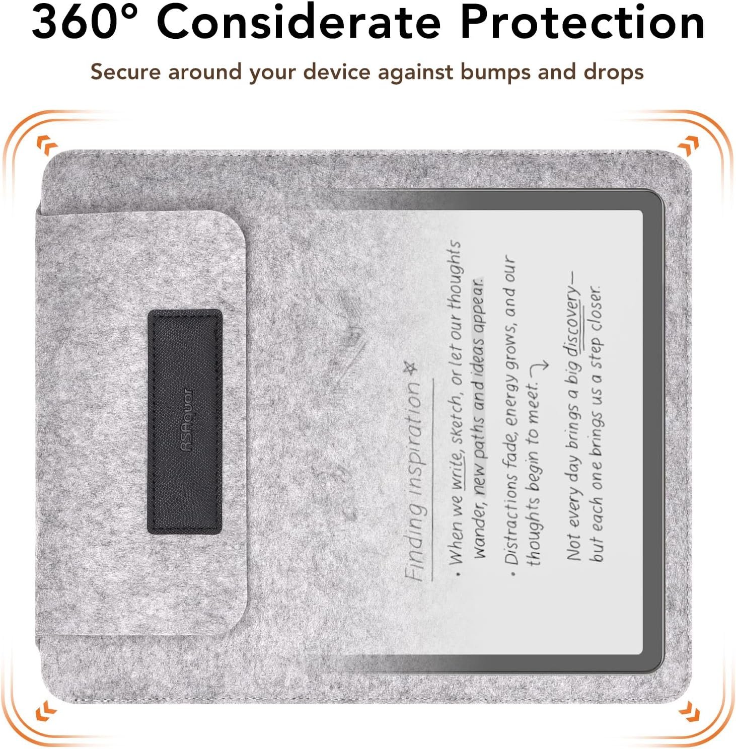【Secure & Protective Closure】The thick felt body absorbs daily bumps and scratches, while the Hook-and-Loop closure ensures your Kindle stays securely in place during travel or storage