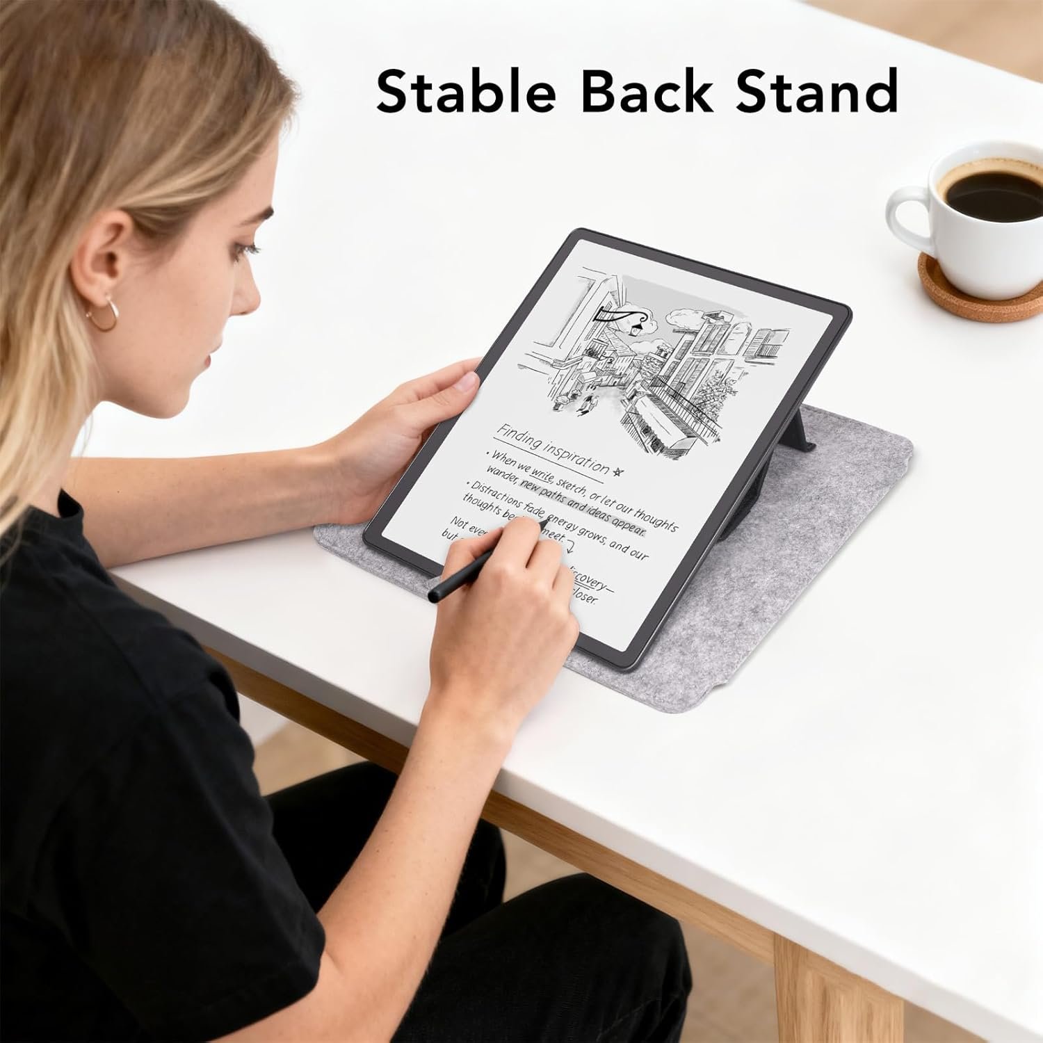 【Built-in PU Leather Stand】The foldable external PU stand lets you prop up your Kindle for hands-free reading or writing. Enjoy comfort whether at your desk, in bed, or at your favorite café