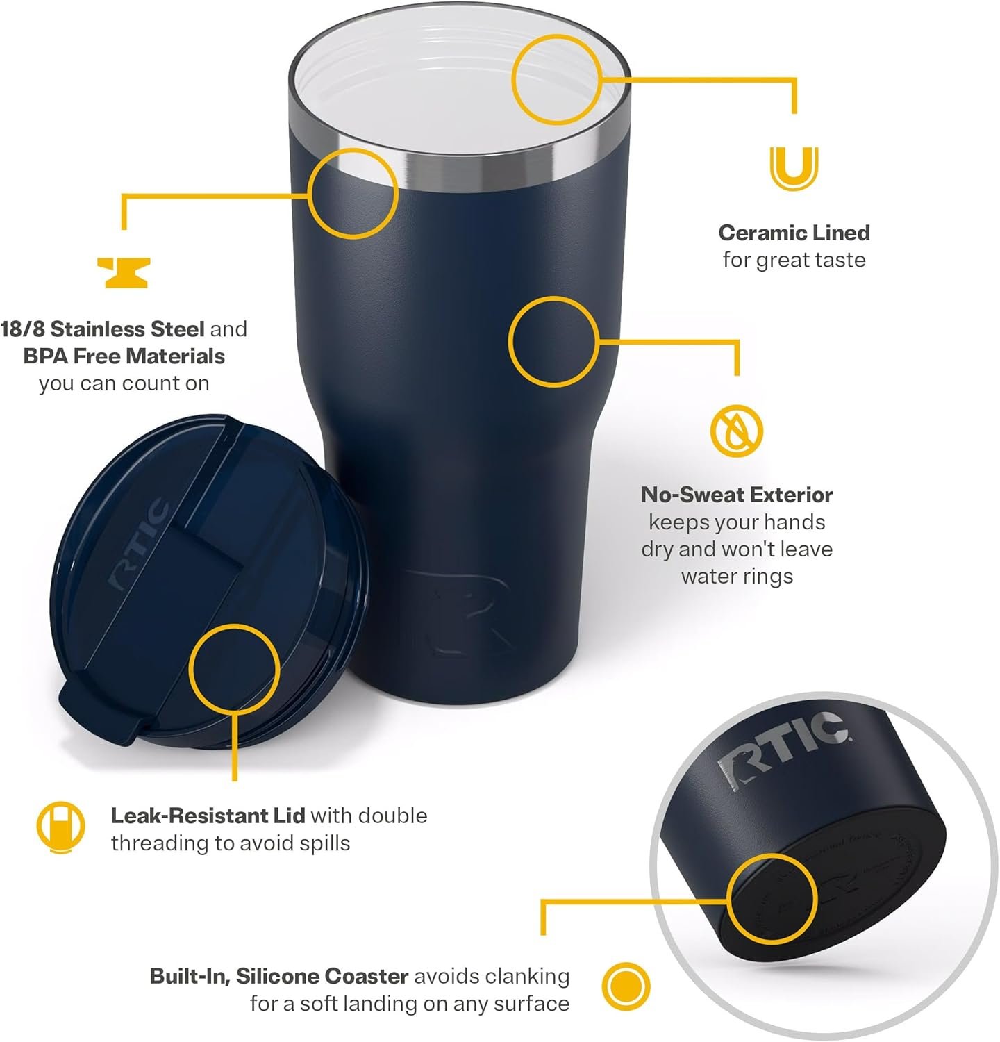 Be the first to review “RTIC 30oz Essential Tumbler with Lid, Ceramic Lined, Insulated, Stainless Steel, Metal, Double Wall Vacuum-Insulation, Travel Cup for Iced Coffee, Tea, Hot and Cold Drink, Navy”