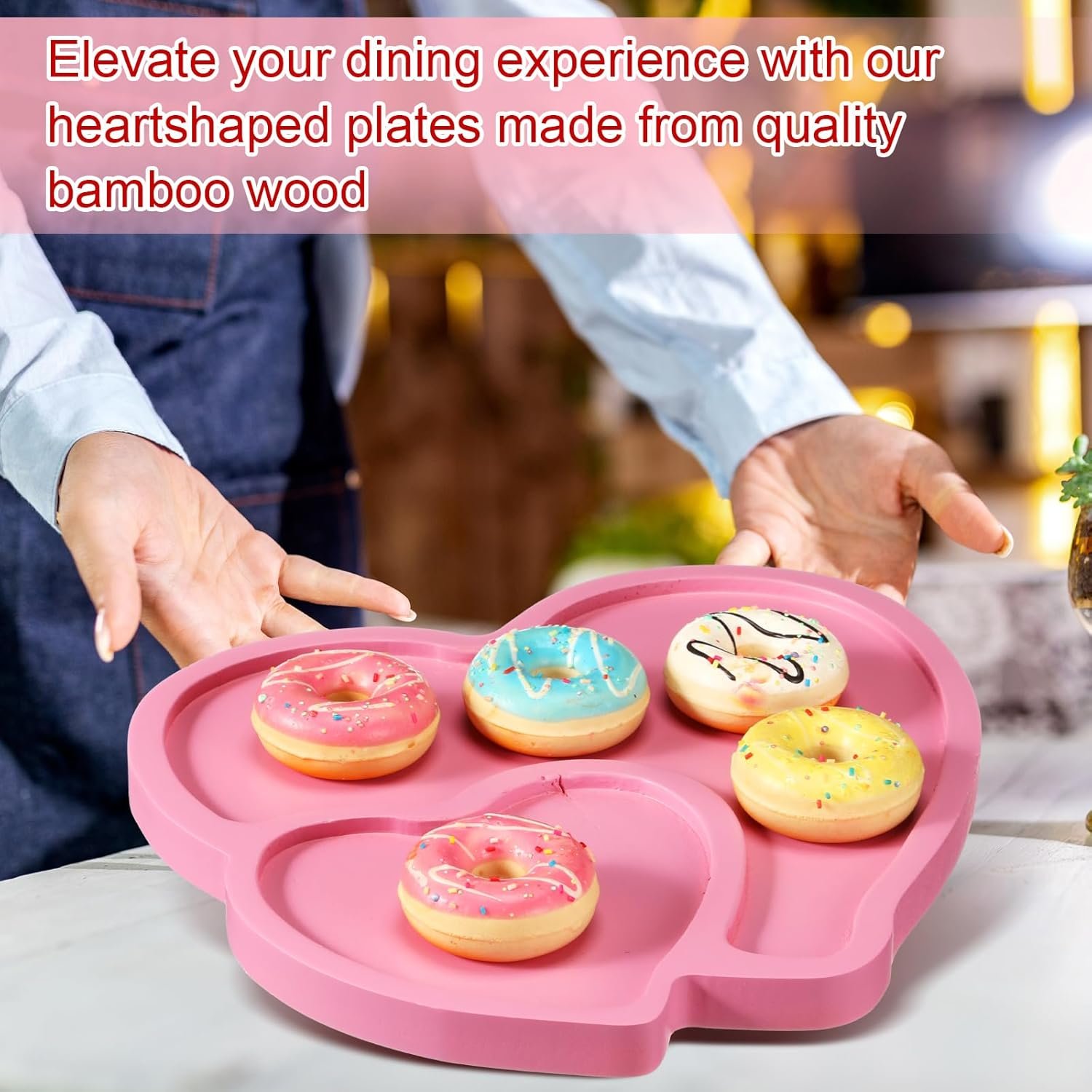 Package Included: 1 x Double Heart Shaped Bamboo Tray, pink in color, These plates are good for serving exquisite salads, fruits, special dishes, and desserts, makes your meal look special and more sophisticated and elegant