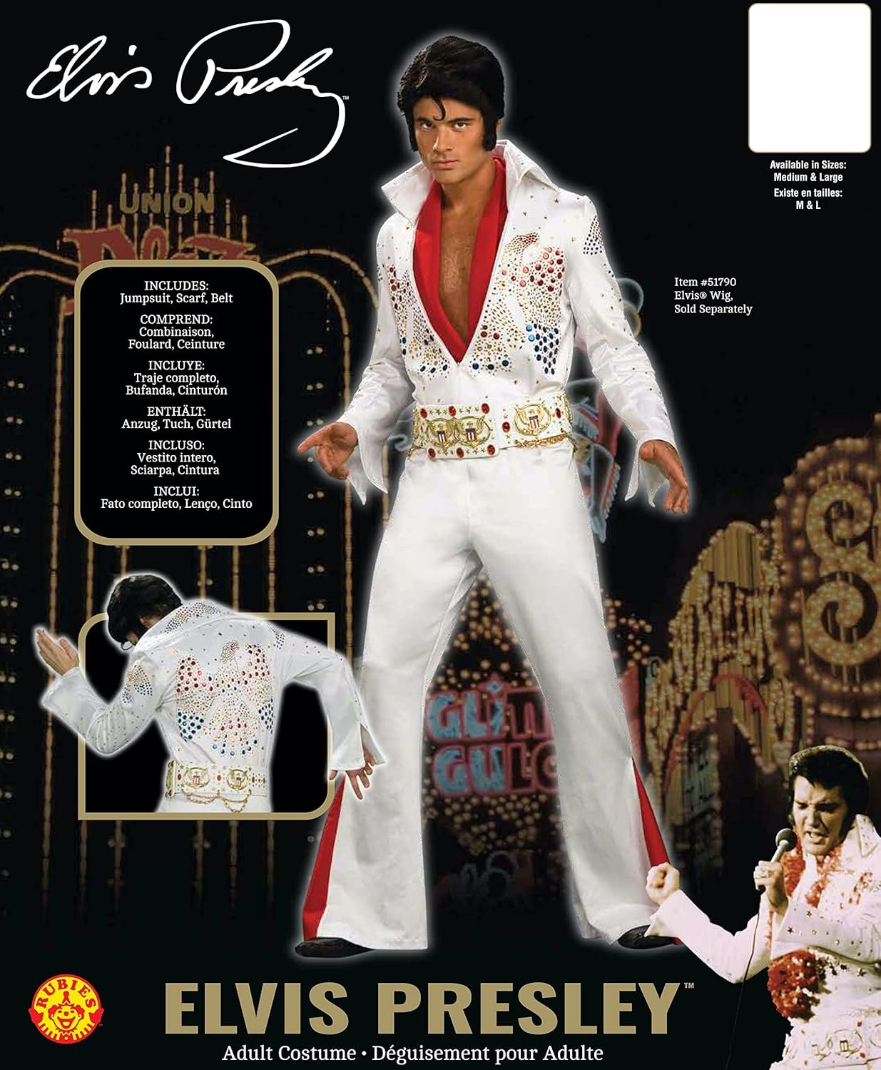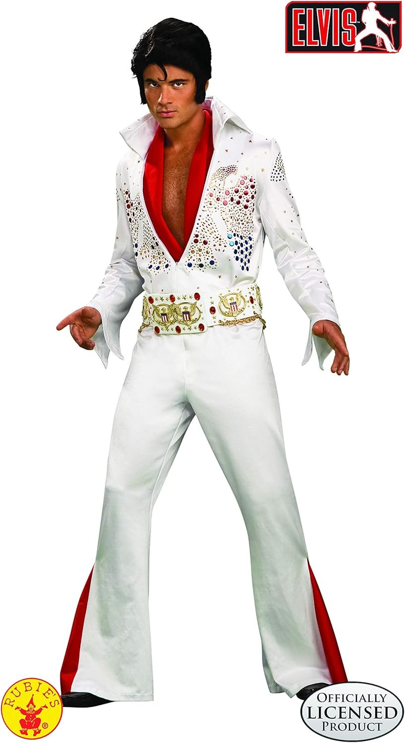 Step into the spotlight and channel the King of Rock ‘n’ Roll with the Men’s Grand Heritage Elvis Presley Costume by Rubies This deluxe ensemble is fit for Vegas and beyond, featuring an iconic white jumpsuit loaded with dazzling details, from bold gold accents to rhinestone-style flair that screams Elvis glam. The matching belt cinches the look with classic Presley swagger, while the included red scarf adds that signature stage-ready flair. Perfect for costume parties, tribute performances, or simply living out your rockstar dreams, this officially licensed Grand Heritage costume brings the legendary energy of Elvis to life in unforgettable style. Slip it on, strike a pose, and get ready to say, “Thank you—thank you very much.”