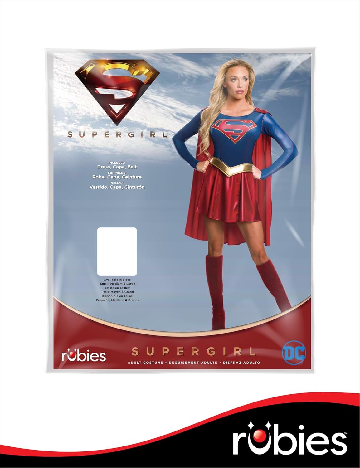 Step into the shoes of National City’s greatest hero with the DC Comics Supergirl TV Series Deluxe Costume for Adults by Rubies. Inspired by the hit show, this iconic outfit features a blue long-sleeve dress with the bold “S” symbol, an attached red skirt, a gold belt, and a removable red cape ready for soaring. Perfect for Halloween, cosplay, or superhero nights, it captures Supergirl’s strength, bravery, and heart. With true-to-screen details and official licensing, you’ll feel like you’ve stepped right out of National City. Powerful, bold, and heroic, this costume lets you unleash your inner Kara Zor-El and be the hero you were meant to be! Since 1951, Rubies has been a trusted name in fun, offering safety-tested costumes, wigs, masks, and accessories for kids, adults, pets, and décor. Now part of a global family of brands, Rubies delivers both licensed and original styles designed with quality, comfort, and creativity in mind. From Halloween to everyday play, our wide assortment helps bring imagination to life with on-trend looks and iconic characters. With over 70 years of experience, Rubies continues to inspire unforgettable moments for the whole family—year-round.