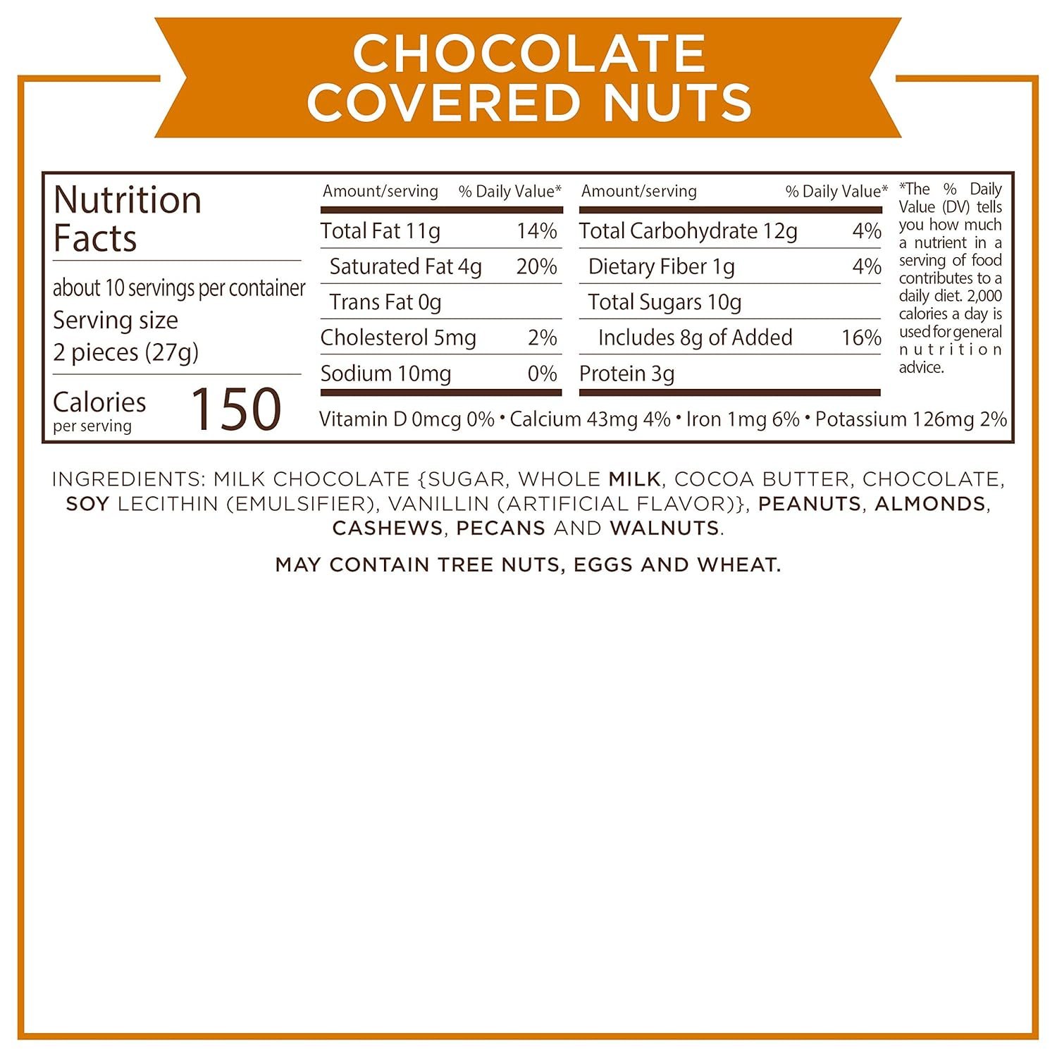 18 piece assortment of 5 delicious, nutty favorites. Product sold by weight, not volume.