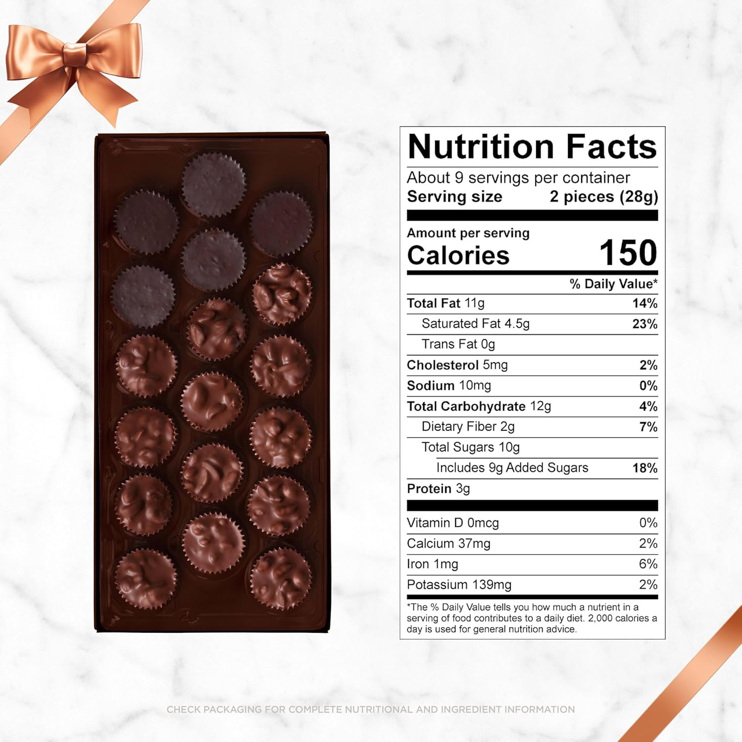 Spread joy this season with our RUSSELL STOVER Christmas Chocolate Covered Nuts Assortment in Milk Chocolate & Dark Chocolate Candy Gift Box, 9 oz. This delicious 18 piece assortment contains 5 nutty favorites: milk chocolate pecan & walnut cluster, milk chocolate cashew cluster, milk chocolate peanut cluster, milk chocolate almond cluster and dark chocolate coconut cluster. Celebrate with sweetness! This delicious gift box is perfect for sharing with family and friends or adding a sweet touch to holiday gatherings! Crafted with the finest ingredients, RUSSELL STOVER has been an American-made classic since 1923. We are proud to be part of your Christmas candy traditions and everyday indulgences.