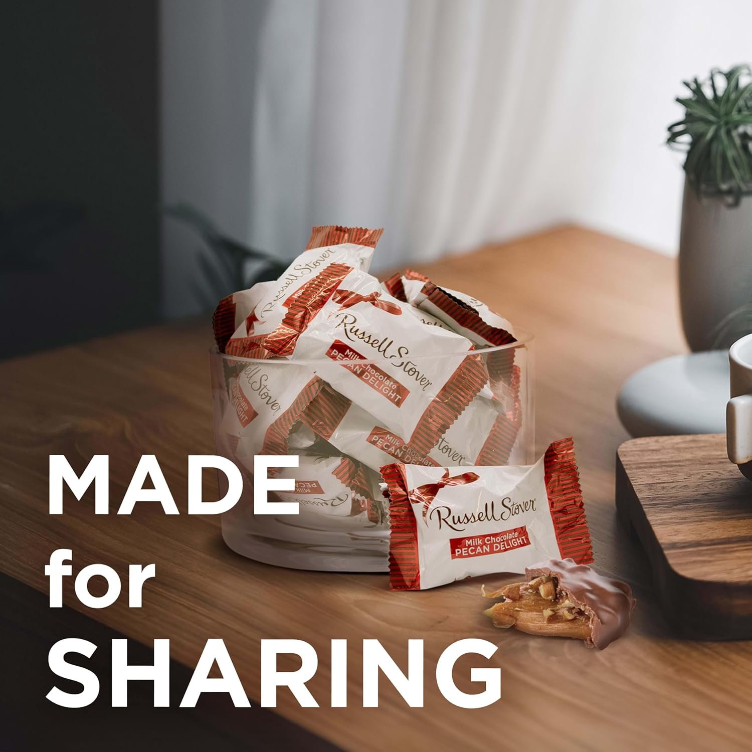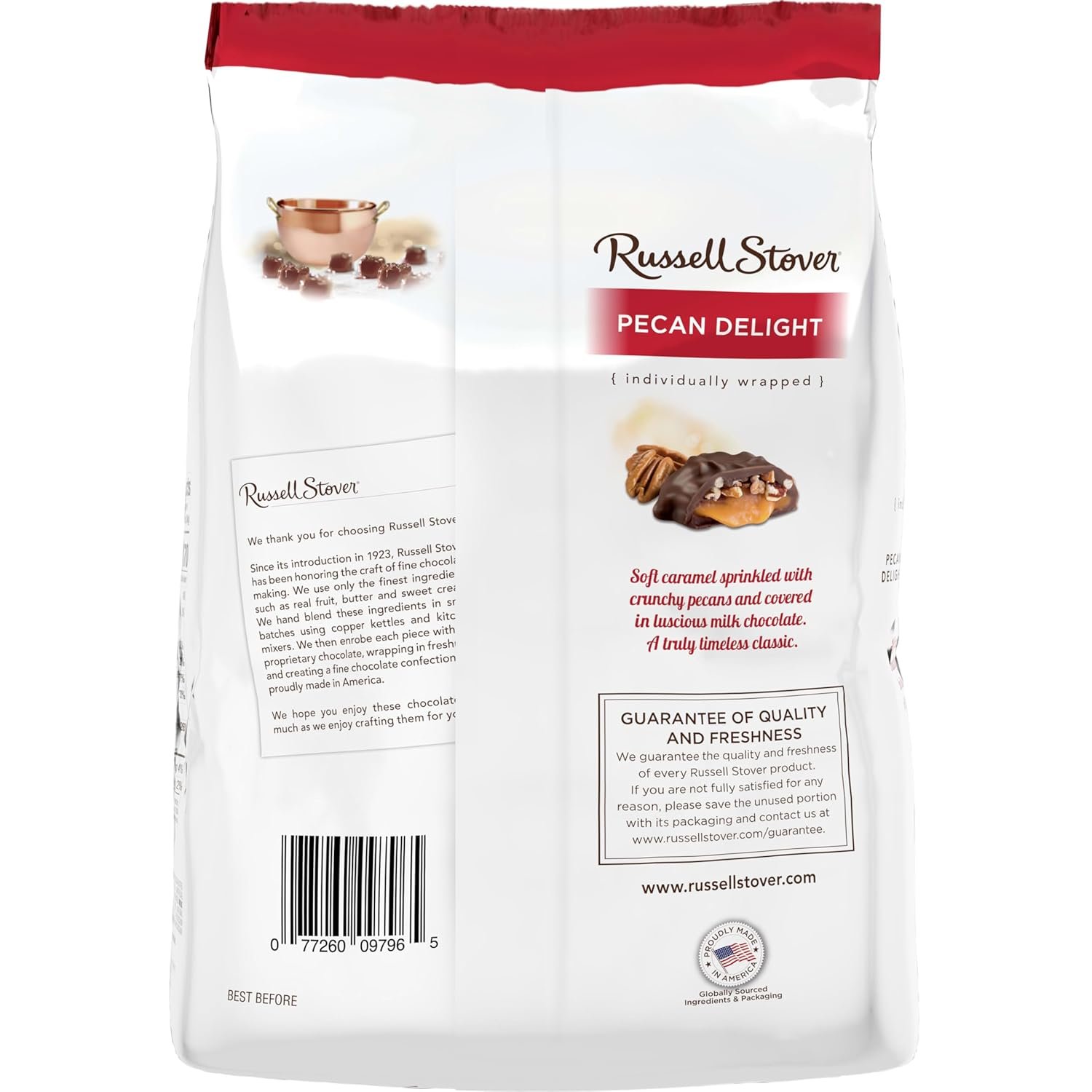 RUSSELL STOVER Milk Chocolate Pecan Delights Candy, 16.1 oz. bag, is packed with approx. 27 individually wrapped pieces of crunchy pecans and kettle-cooked caramel dipped in luscious milk chocolate. A delicious treat to share or take on the go! Made using the finest ingredients, RUSSELL STOVER has been an American-made classic since 1923. We are proud to be part of your holiday candy traditions and everyday indulgences.
