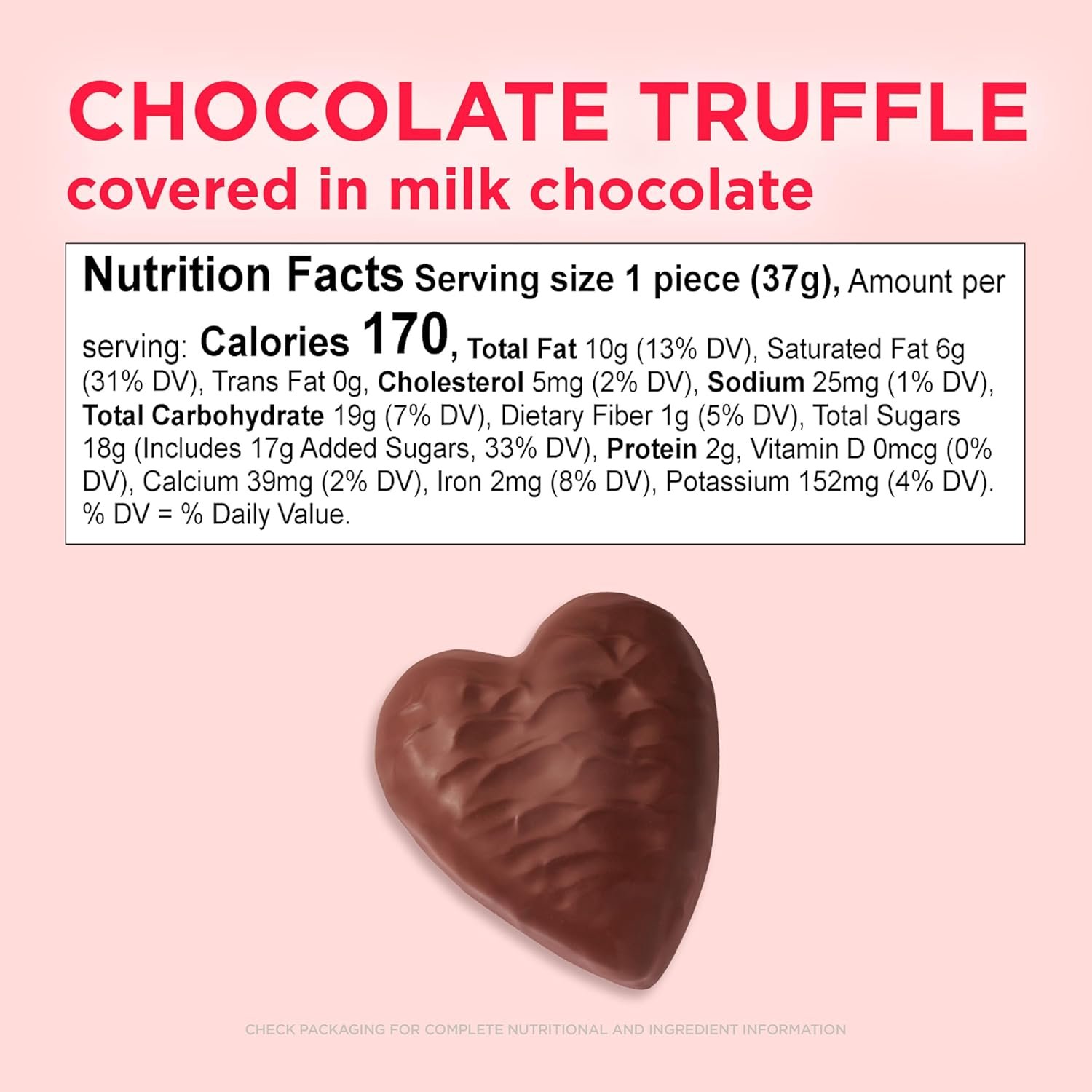 Each 1.3 oz. Valentine’s Day heart has a rich chocolate truffle center covered in our creamy milk chocolate. Product sold by weight, not volume.