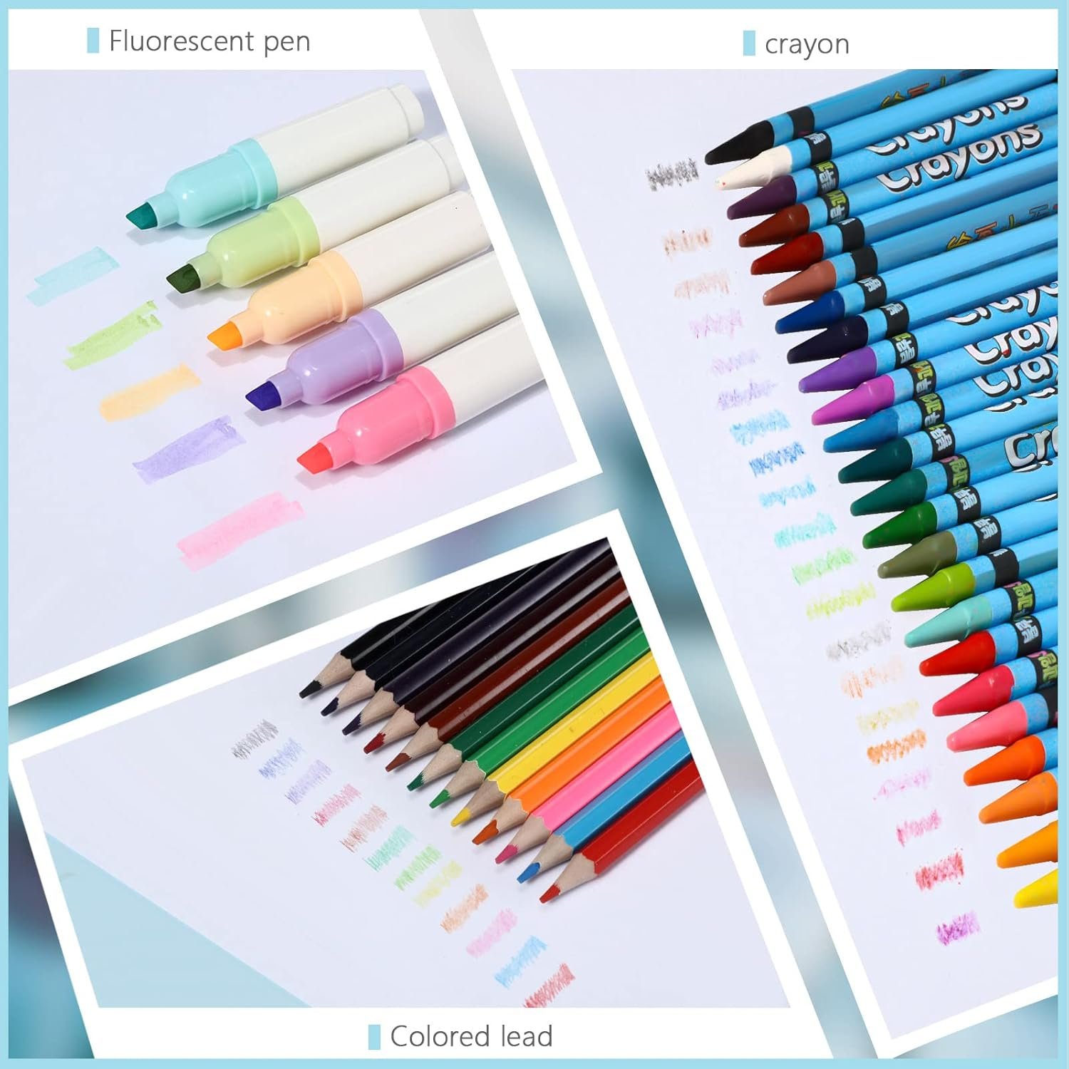 Safe and Useful: our school supplies kit is safe and reliable, no irritation, well designed for children; For instance, highlighters are water based, pencils are graphite, pencil sharpeners for collecting shavings, small scissors for kids to operate, crayons, highlighters for drawing or taking notes, eraser for erasing wrong writing, folders for sorting paper, pencil case for storing pens and other accessories and so on