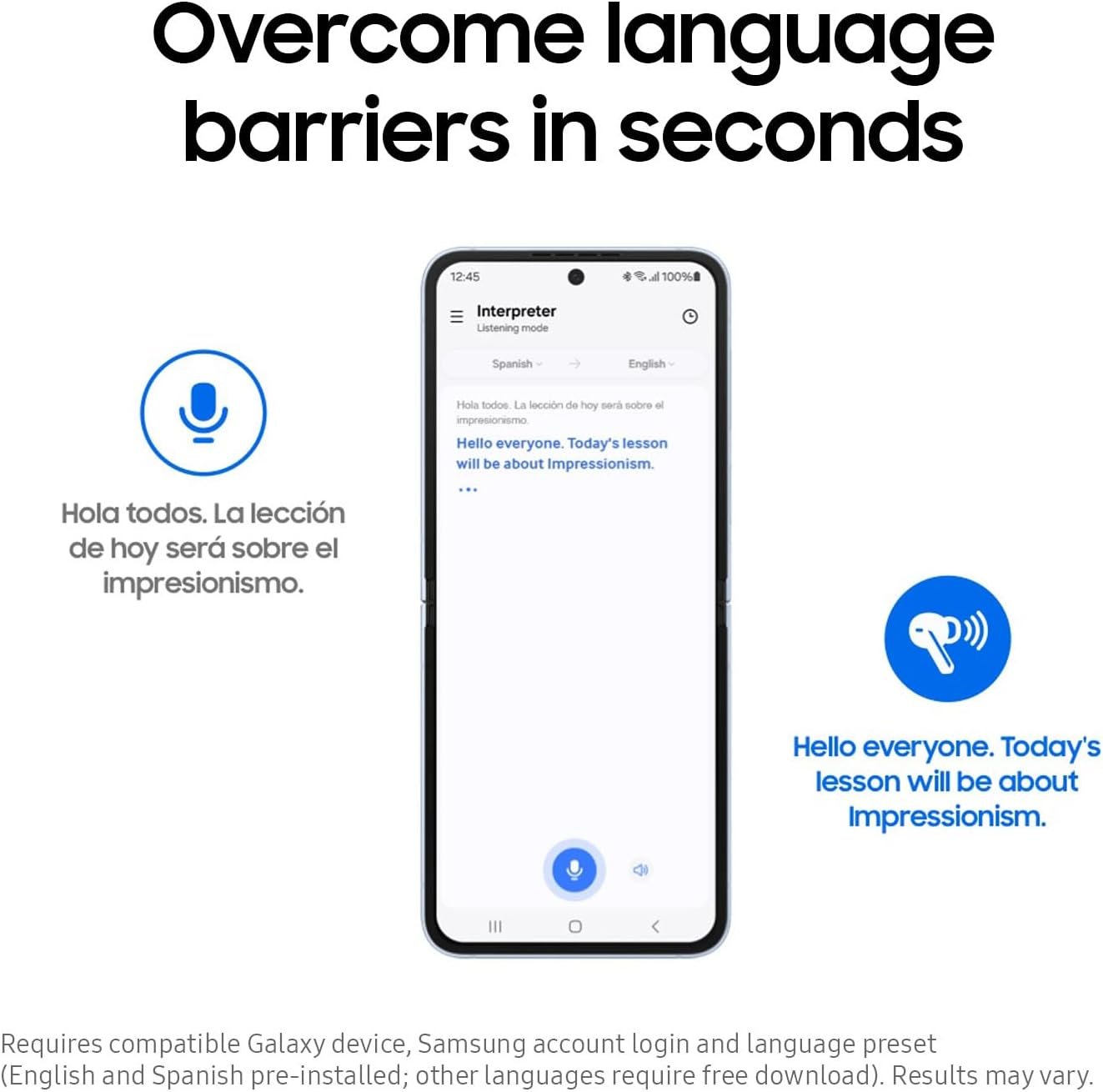 LIVE TRANSLATE AND REAL-TIME INTERPRETER: Hear translations through your Galaxy Buds while on calls or face-to-face conversations², when they say “hola”, you hear “hello”