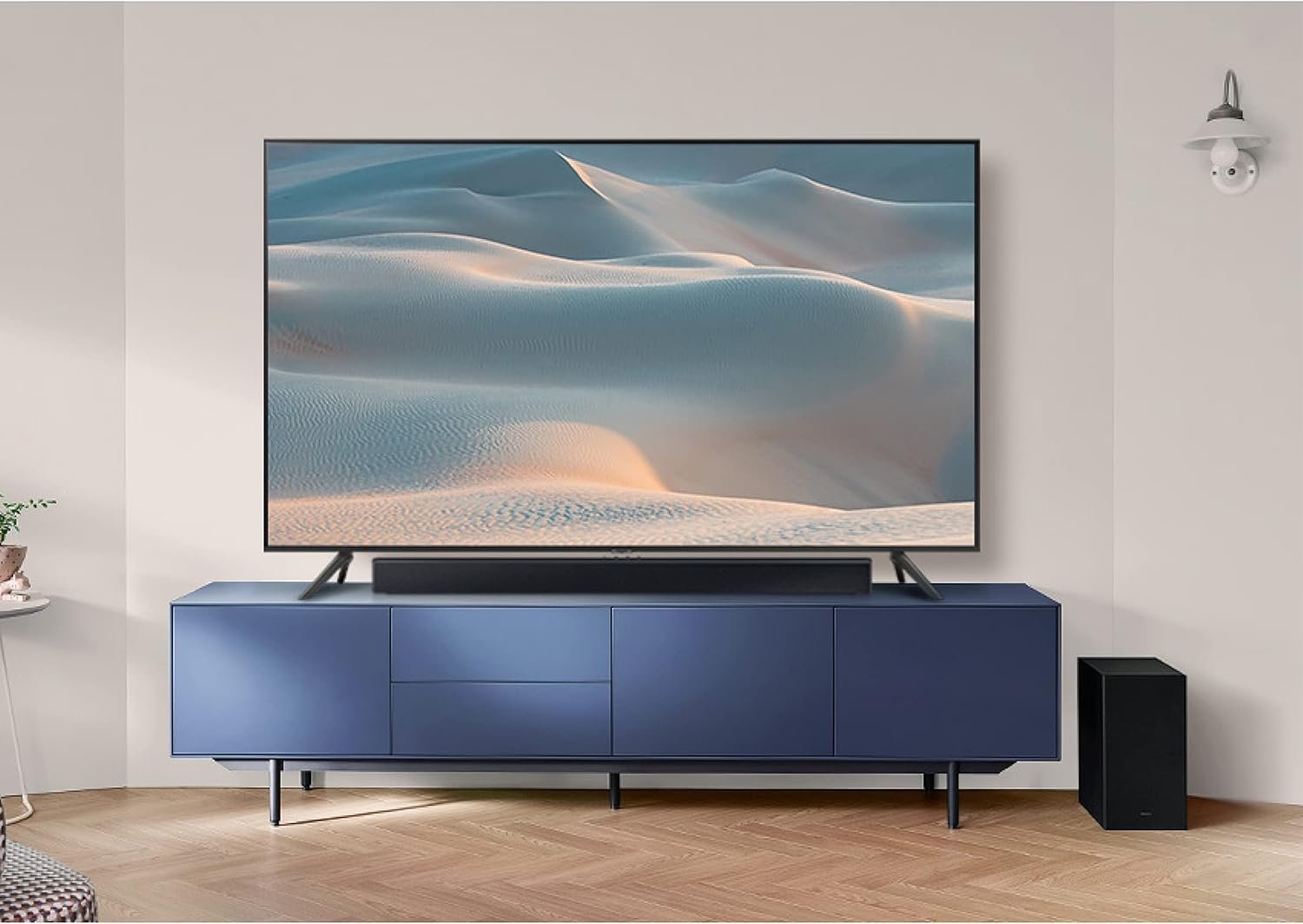 *Compatible with Gaming Hub and select gaming consoles (e.g. Xbox X, PS5). Game console sold separately. **Requires a Bluetooth® compatible TV. ***Optional Samsung speakers sold separately.