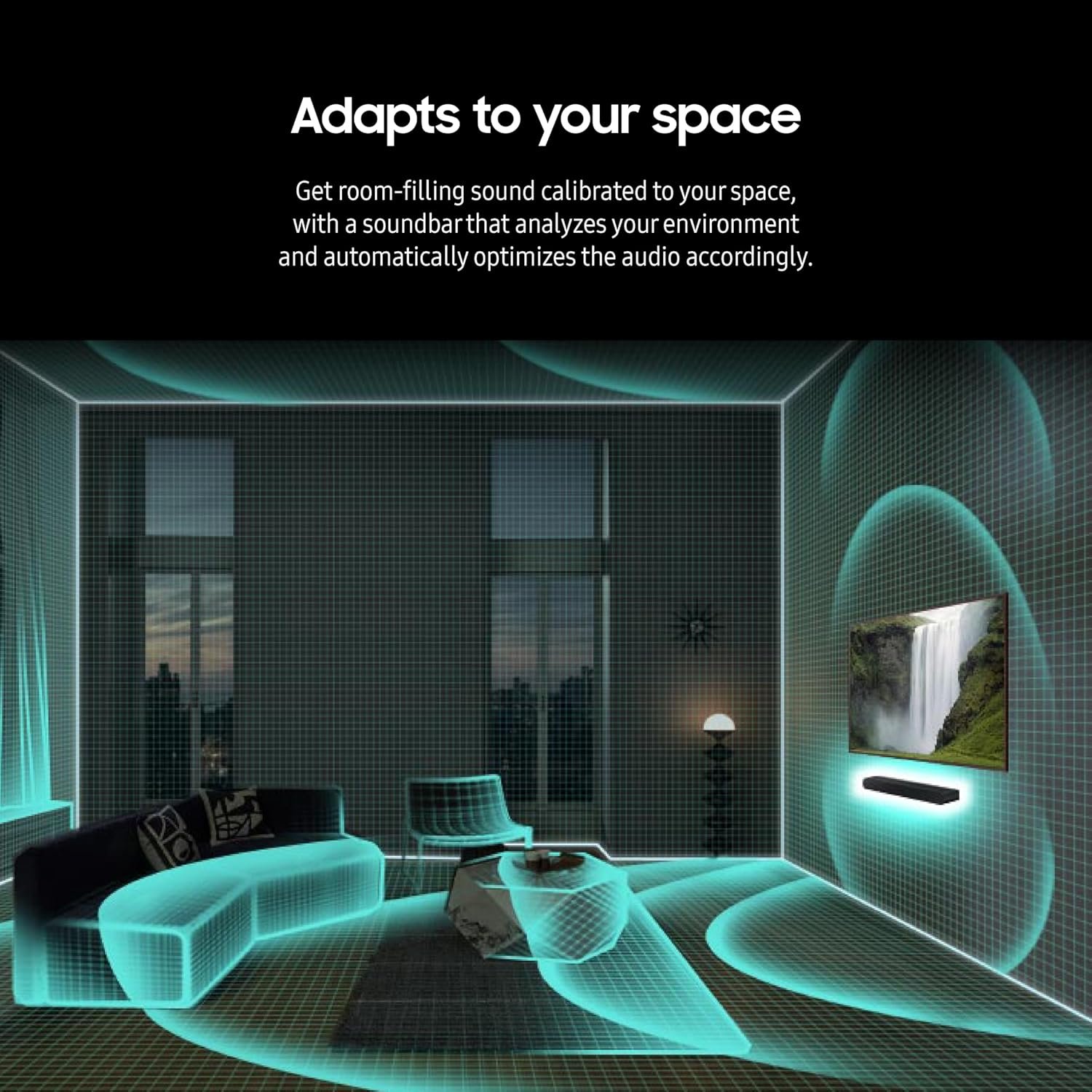 ¹Q-Symphony requires a compatible 2020- 2024 Samsung TV ²Compatible with select 2022-2024 Samsung TVs. ³Content Services may vary by region & are subject to change without notification. Amazon, Alexa, and all related logos are trademarks of Amazon.com, Inc. or its affiliates. ⁴This service is provided by Google and can be terminated at any time. Some features and functions provided by connected devices may be limited or not be supported to use. Content Services may vary by region & are subject to change without notification. ⁵This Samsung Soundbar supports AirPlay2 and requires iOS 11.4 or later. Apple, and AirPlay are trademarks of Apple Inc., registered in the U.S. and other countries. ⁶Compatible with Gaming Hub and select gaming consoles (e.g. Xbox X, PS5). Gaming Hub requires a compatible TV and subscription..