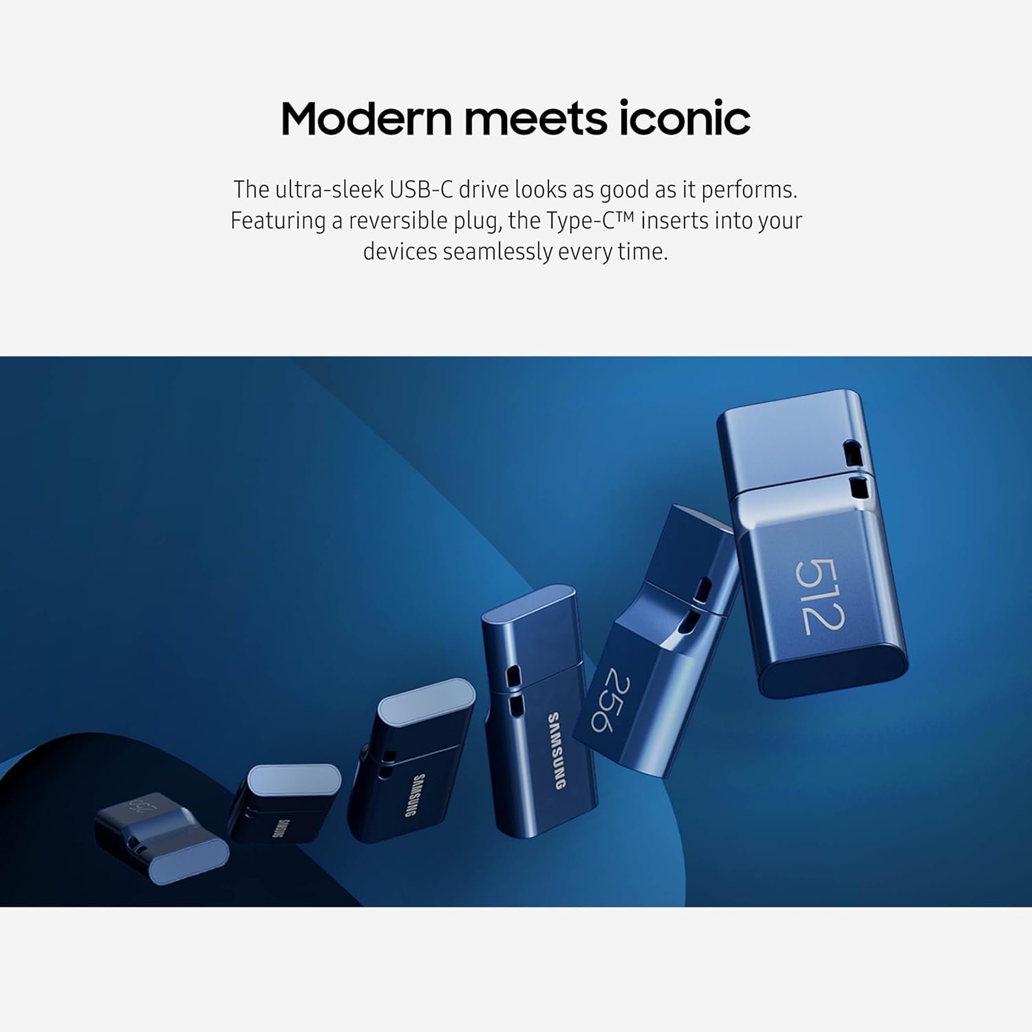 MODERN MEETS ICONIC: The ultra-sleek USB-C drive looks as good as it performs; Featuring a reversible plug, the Type-C inserts into your devices seamlessly every time; Transfer large files with style and ease