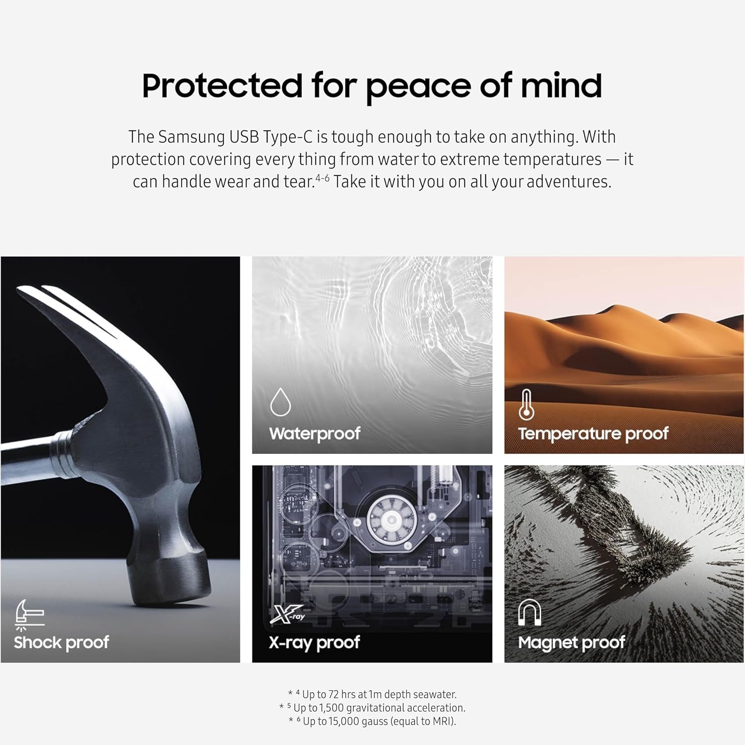 TOUGH & TRUSTED***: Files stay secure, no matter the terrain; Samsung’s flash memory technology makes the Type-C a trustworthy drive to store your valuable data; It’s waterproof, shock-proof, magnet-proof, temperature-proof, and X-ray-proof body, plus it’s backed by a 5-year limited warranty