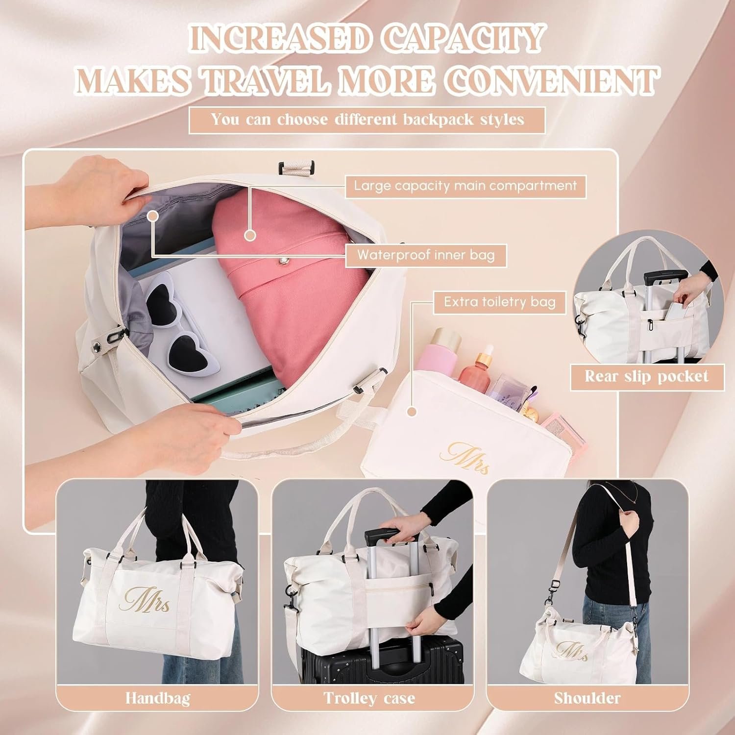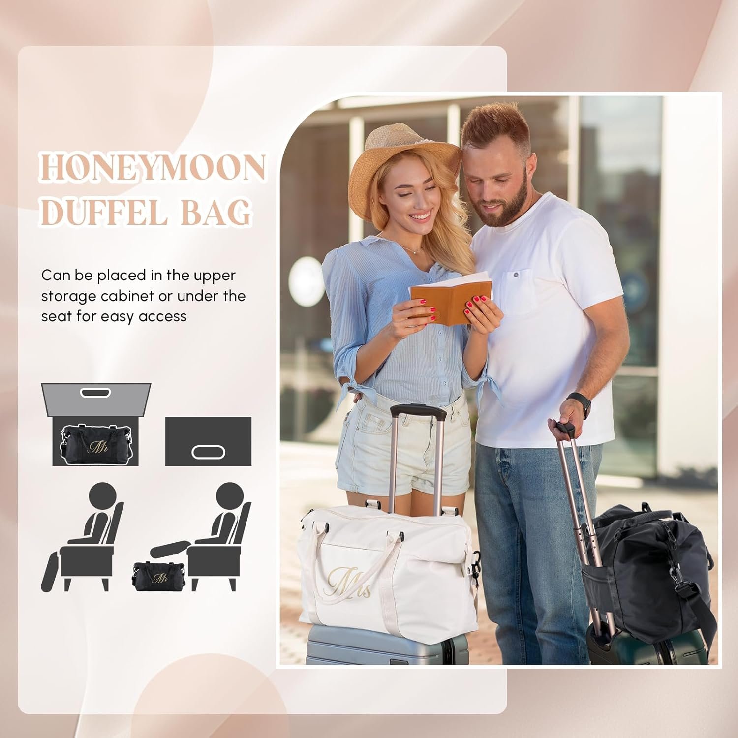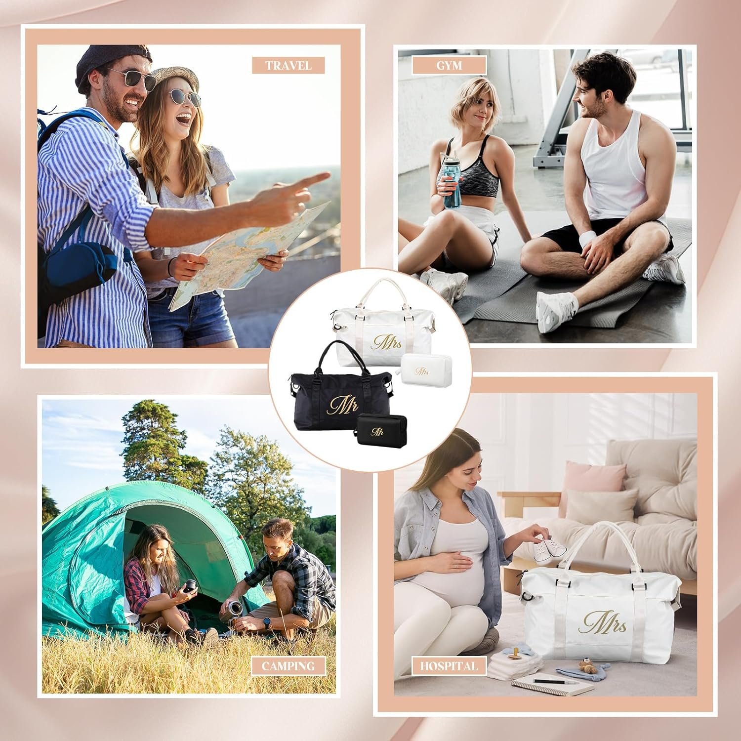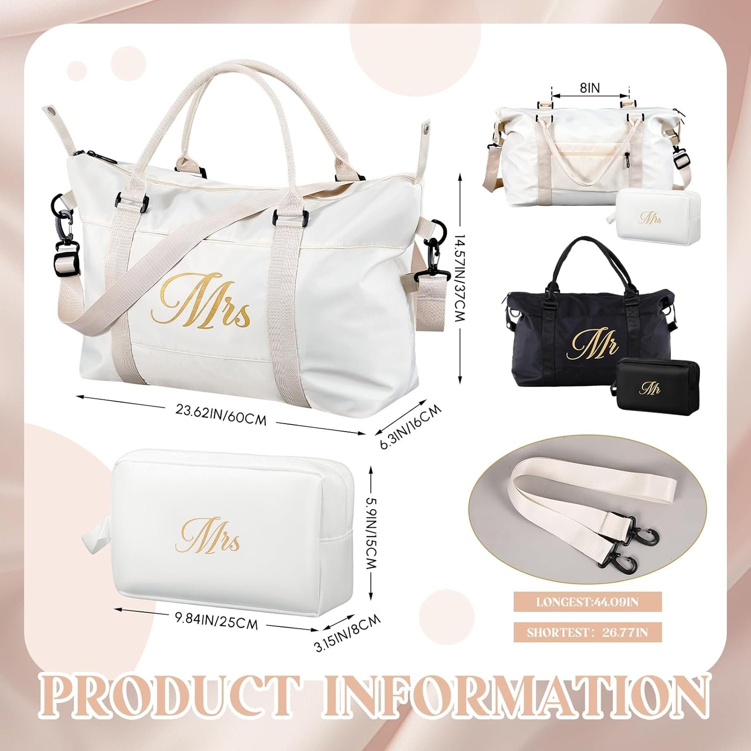 Complete Pack: you will receive 2 Mrs Mr duffle bags for men and women and 2 toiletry bags made of quality and waterproof nylon; The versatile design and longevity of these bags makes them practical for your wedding or honeymoon travel
