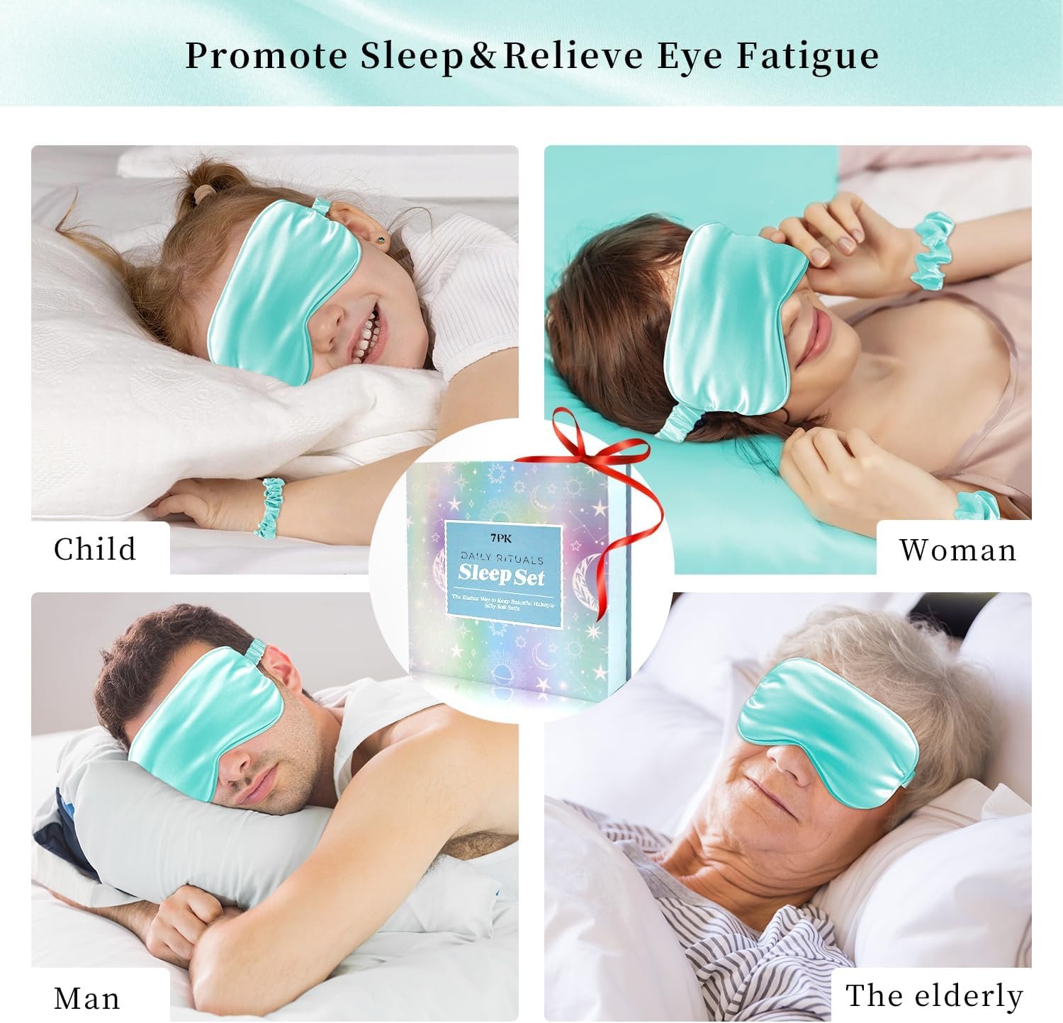 【Enhance your sleep experience】This Silky sleep set is the perfect companion for your night’s rest. Not only does it pamper your hair while you sleep, it also provides deep relaxation for your eyes, ensuring a restful and peaceful night. Our Silky scrunchies are designed so that even if you wear them all night, they will not leave any indentations in your hair. Choose our Silky eye mask, which effectively blocks the surrounding light and creates a completely dark sleep environment to help you sleep through the night and wake up in the best state of mind.