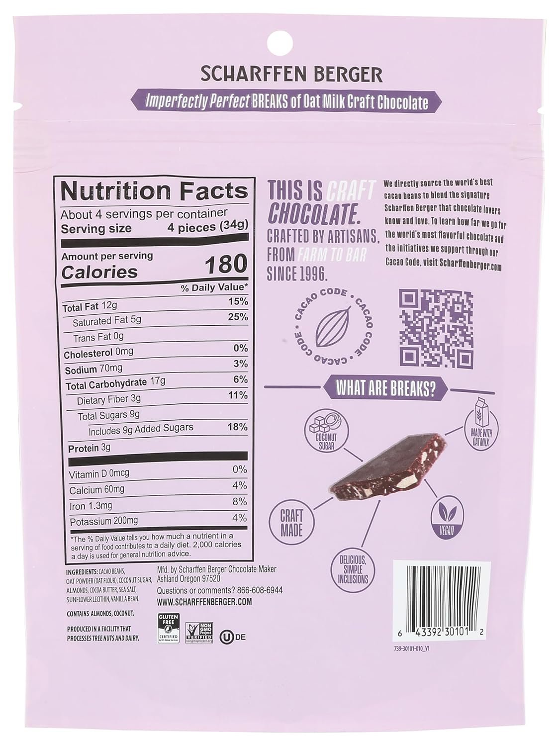 Scharffen Berger Salted Almond 43% Oat Milk Chocolate Bark, 4.5 Oz