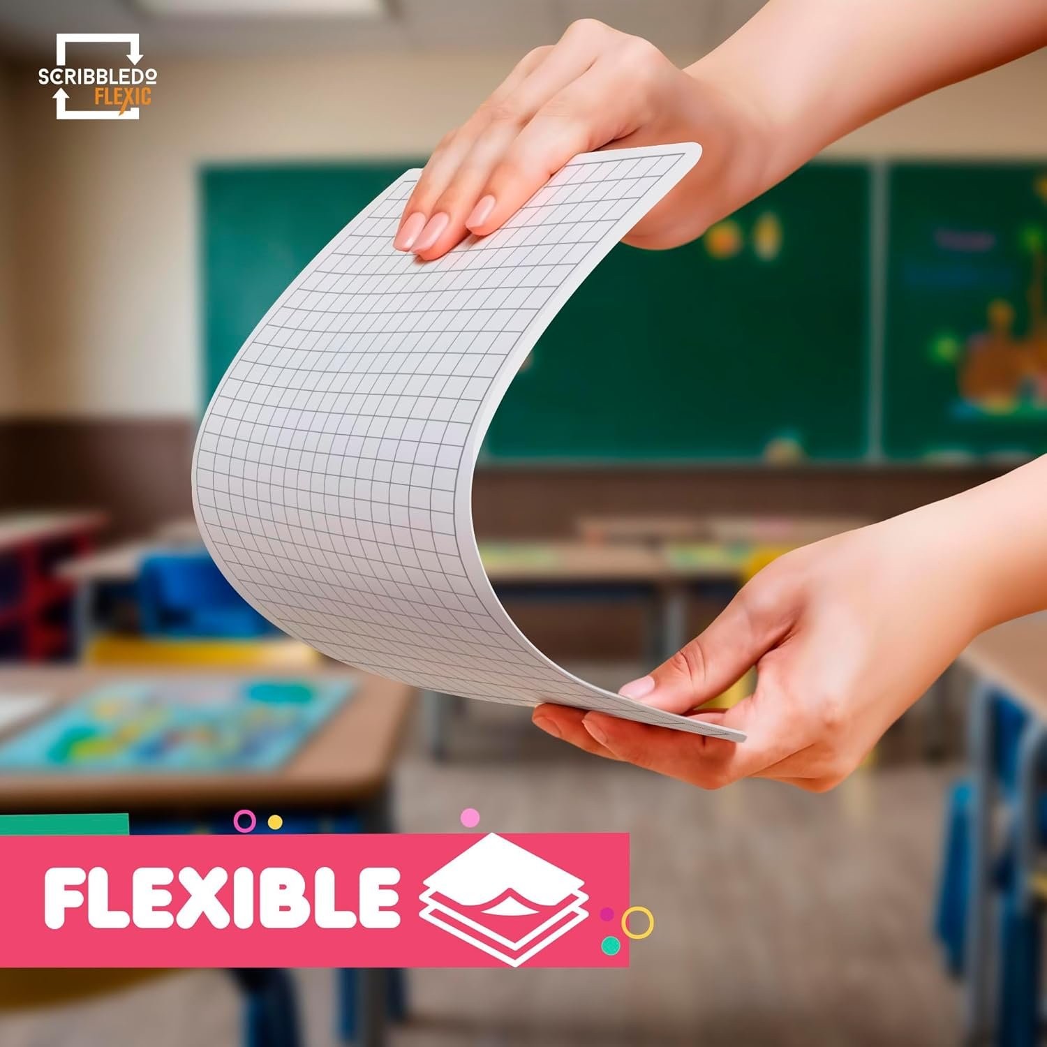 Introducing Scribbledo FLEXIC – Our newest collection of flexible dry-erase sheets offers the same high-quality surface as our traditional boards but with added flexibility. These sheets are designed to be more affordable, lightweight, and space-saving, perfect for classrooms, homes, or on-the-go learning without the bulk of standard boards.