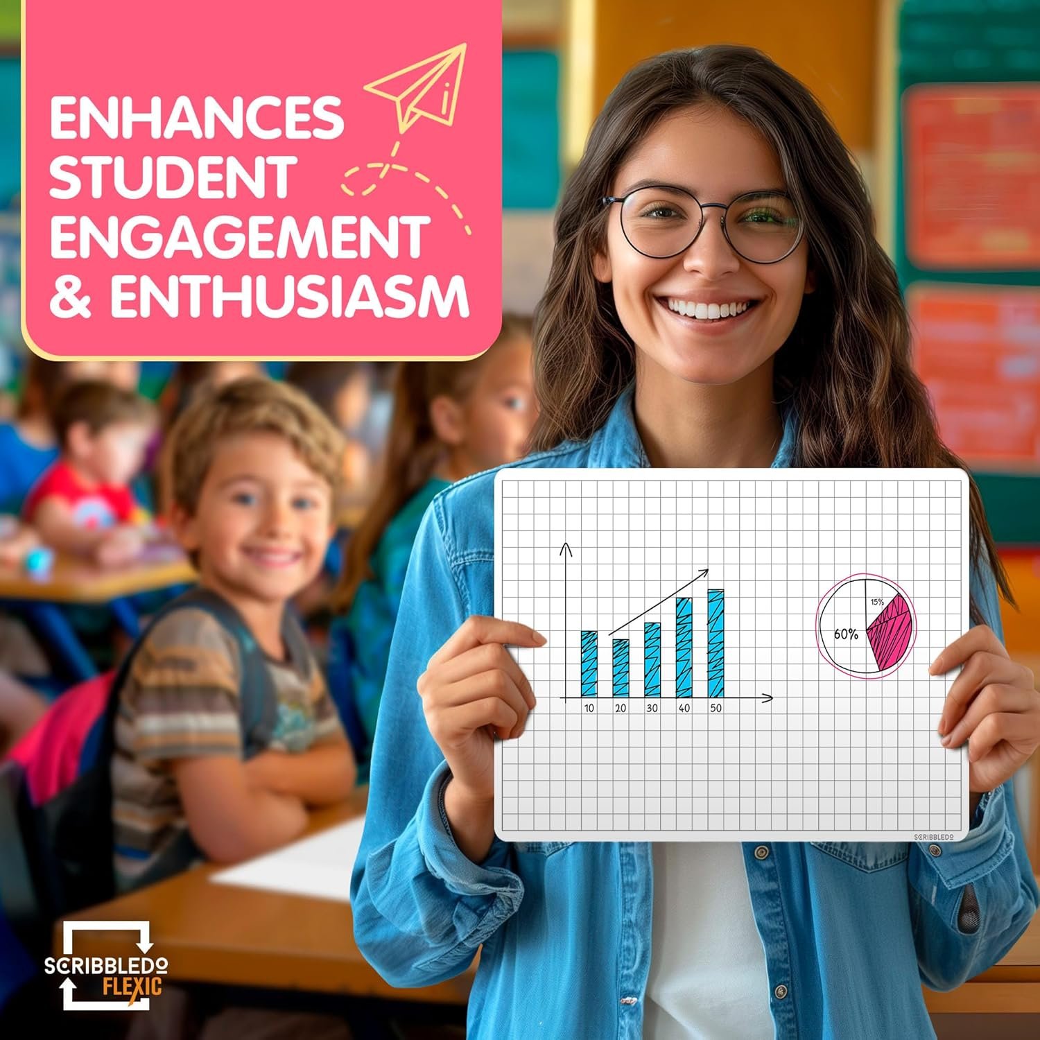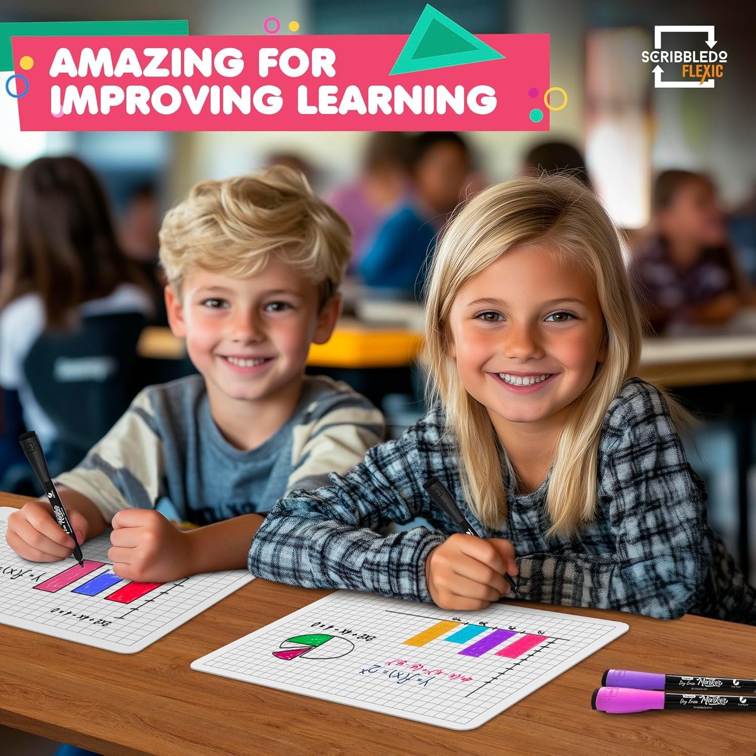 Upgrade your teaching toolkit with our pack of 10 grid dry erase sheets, designed to make math lessons interactive and engaging. Each small dry erase board sheet features a ruled graph 0.4 inch boxes on one side for math sketching, plotting points, graphing lines, while the reverse side offers a blank surface for freehand writing or drawing. The quadrille ruled sheets are made from high-quality dry erase material, these durable and reusable sheets are a cost-effective and environmentally friendly choice. The quad ruled graph sheets are perfect for middle school, high school, and even college math classes, they support a variety of subjects including arithmetic, algebra, trigonometry, geometry and to explore perspective, long division or long multiplication and 3D drawing techniques. The white boards for students are suitable for students from 6th grade through Algebra II and beyond, these homeschool supplies math manipulatives middle school are ideal for math teachers and tutors, enhancing interactive problem-solving sessions in individual practice, group work, and classroom manipulatives. The graph whiteboard sheets are lightweight and easy to store, the dry erase boards are convenient for on-the-go tutoring or classroom use, allowing for quick setup and cleanup. Whether you’re a middle school math teacher, a high school geometry instructor, or a math tutor, our small white board dry erase sheets will help make your lessons more dynamic and effective. Bring a new dimension to your math supplies with these versatile dry erase board with lines, perfect for plotting, graphing, and solving math problems with ease. Order your grid whiteboard pack today and transform the way you teach math!