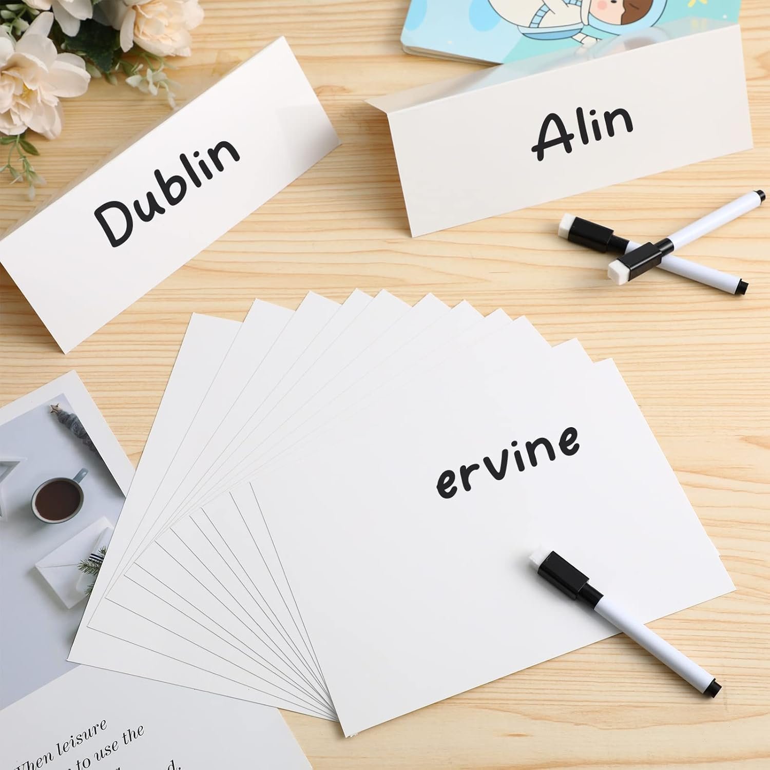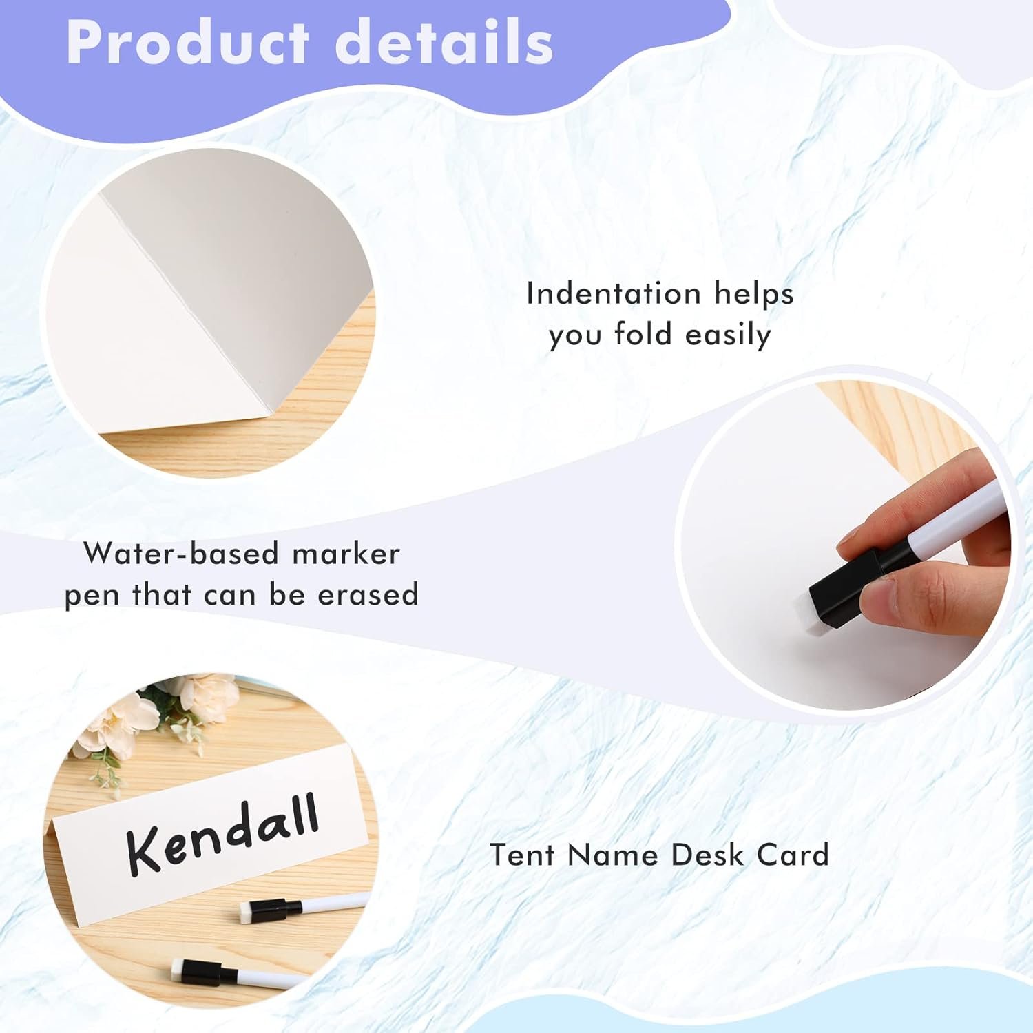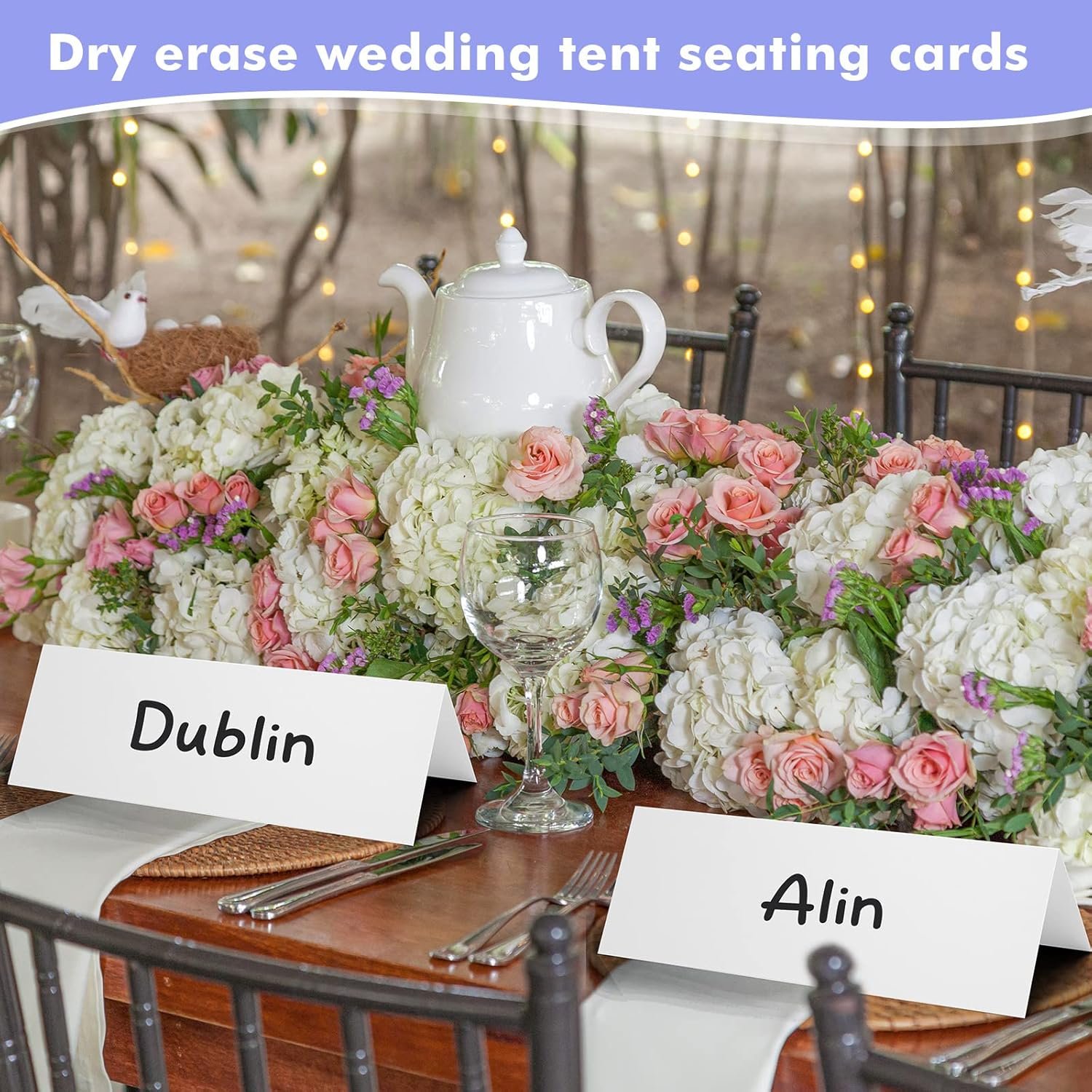 Rich in Quantity: you will receive 100 pieces of dry erase name tents and 5 pieces of marker pens, enough quantity and thoughtful combinations to meet your daily use and replacement needs, and you can also share some with your friends and family members