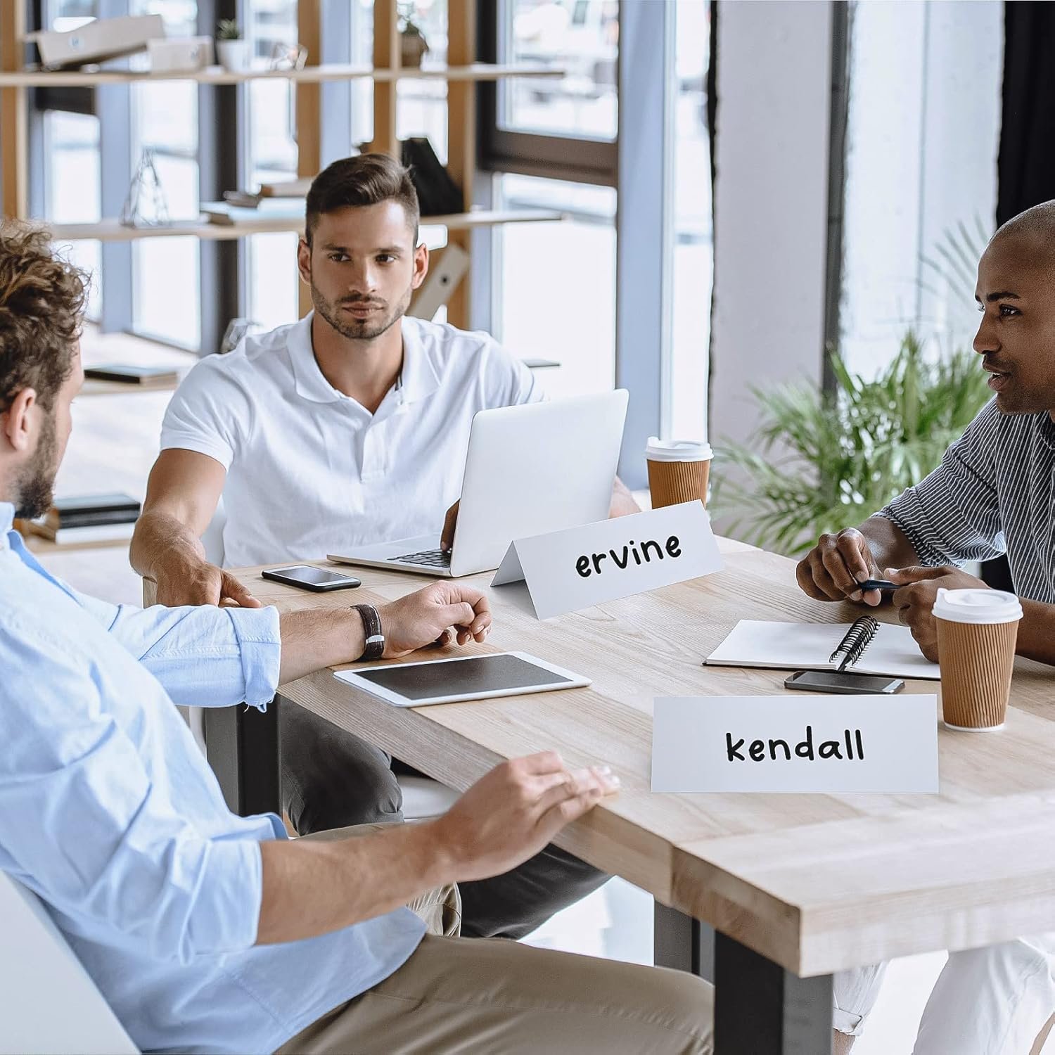 Stable Tent: these dry erase tent cards are designed with a crease in the middle and feature a tent shaped design, which can stand stably on a flat surface and is hard to slip off, easy for others to see clearly, quickly know who you are