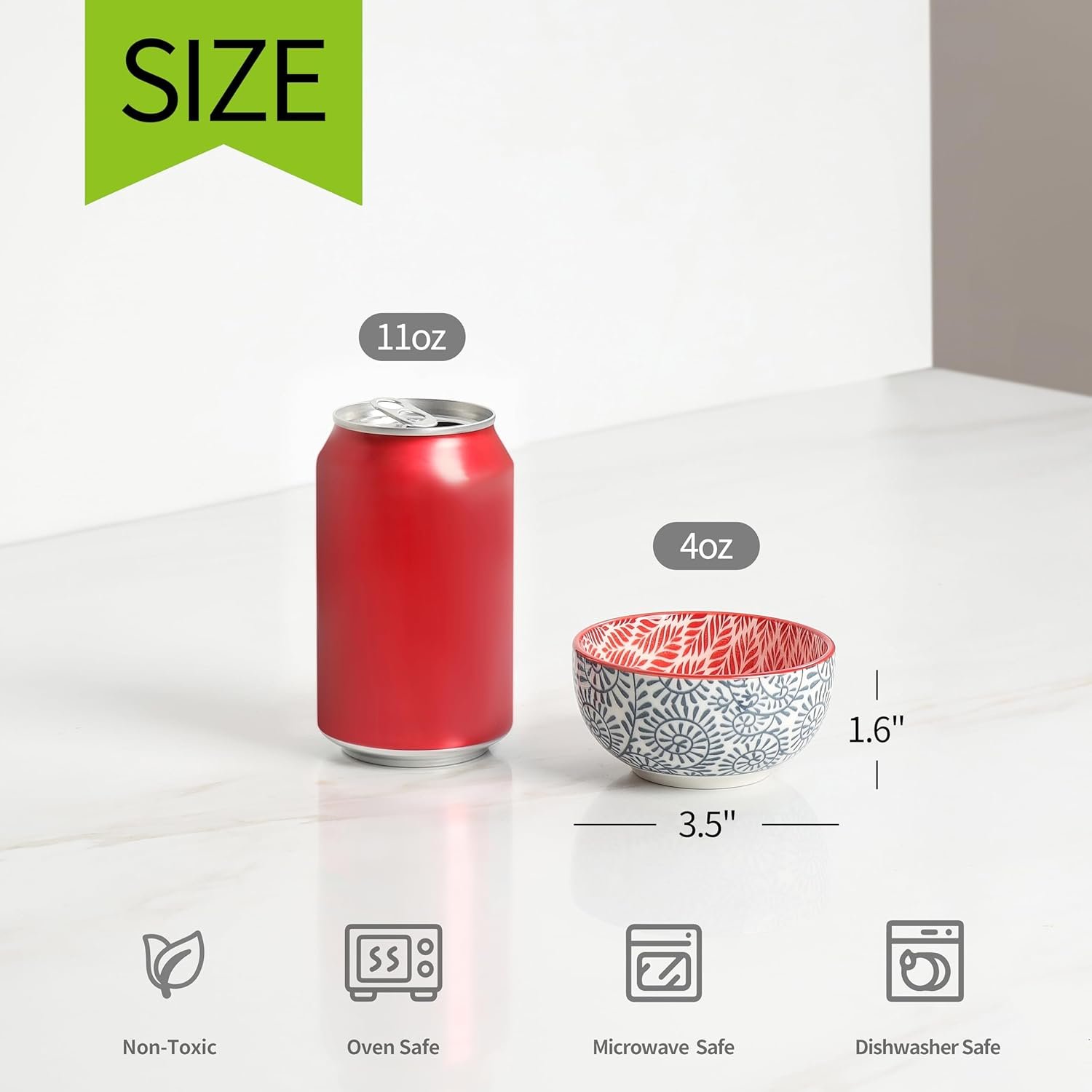 EASY TO CLEAN & SAVE SPACE – These dipping bowls are made of premium unleaded & Non-toxic glaze. Its smooth finish resists sticking to make them clean easily. The lightly curved side and width make storage a breeze and release more cabinet space.