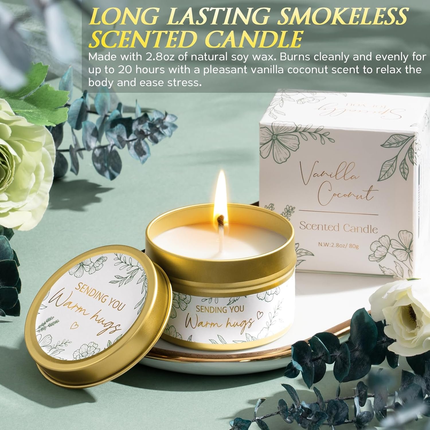 RELAXING SPA GIFT BASKETS FOR WOMEN: The spa kit for women gift set features a 2.8oz vanilla coconut soy candle with up to 20 hours of burn time, paired with matching bath salts and handmade oatmeal soap—designed to relax her body, calm her mind and brighten her mood. This caring spa gift baskets for women relaxation gifts birthday gifts for women mom sister care package for women after surgery is a gentle expression of care, quietly delivering love, support, and strength when she needs it most