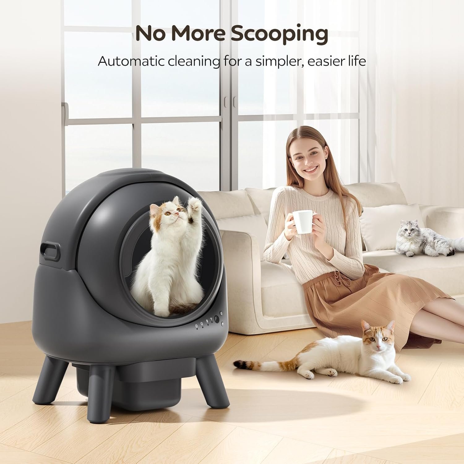Smart Remote Control & Personalized Cleaning​​: Take full control through 2.4GHz Wi-Fi and a dedicated app that offers real-time monitoring, usage analytics, and maintenance alerts. Choose between automatic scheduling or manual cleaning to perfectly match your routine and your cat’s habits.