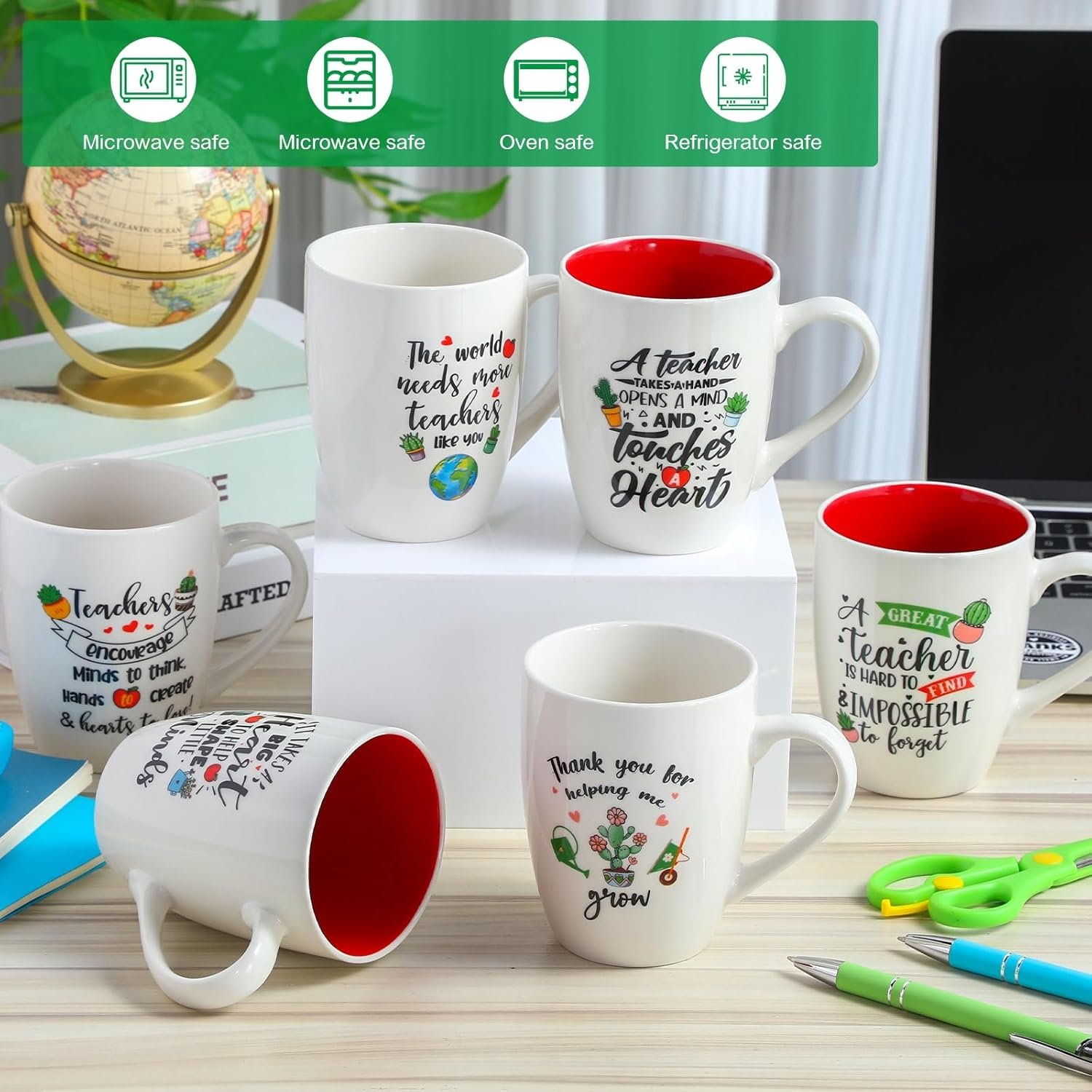 Teacher Coffee Mugs Set: The package included 6 pack ceramic teacher mugs with intricately designed and reliable quality. You can give them to your math teacher, language teacher, music teacher, science teacher, social teacher, physical teacher, etc