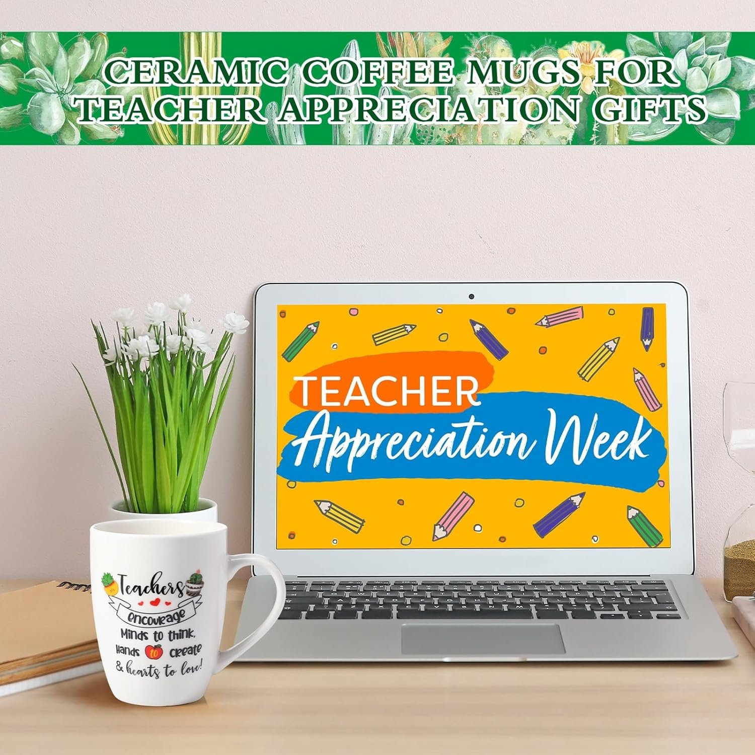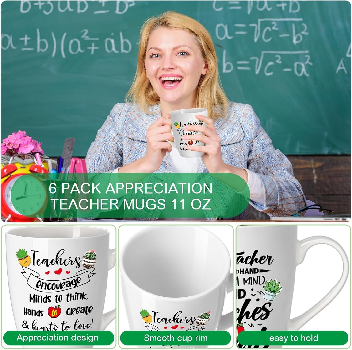 Ideal for any drink, this package includes 6 Ceramic Mugs 11 Oz, catering for both teacher tea mugs and teacher coffee mugs needs.