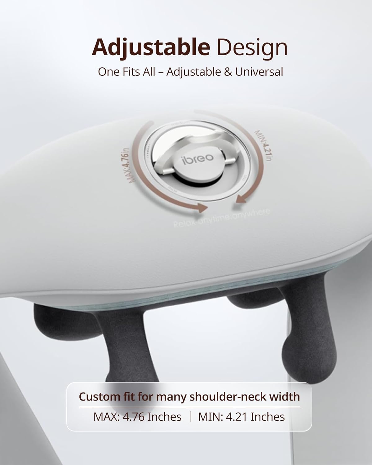 Adjustable & Hands-Free Design: The massage heads feature a 4.2″–4.8″ adjustable spacing, combined with an adjustable shoulder strap, to adapt to various body types. The hands-free back-strap design lets you use it with ease during work, relaxation, or multitasking