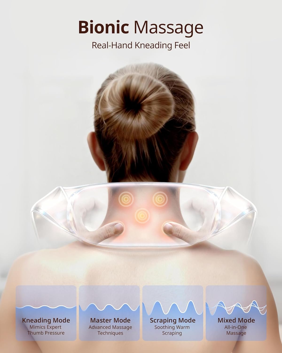 Simulating Real Hand Massage: 4 Personalized Modes – Kneading, Master, Scraping, and Mixed. Choose from 3 intensity levels (High/Medium/Low) for a massage experience that feels like a personal masseuse