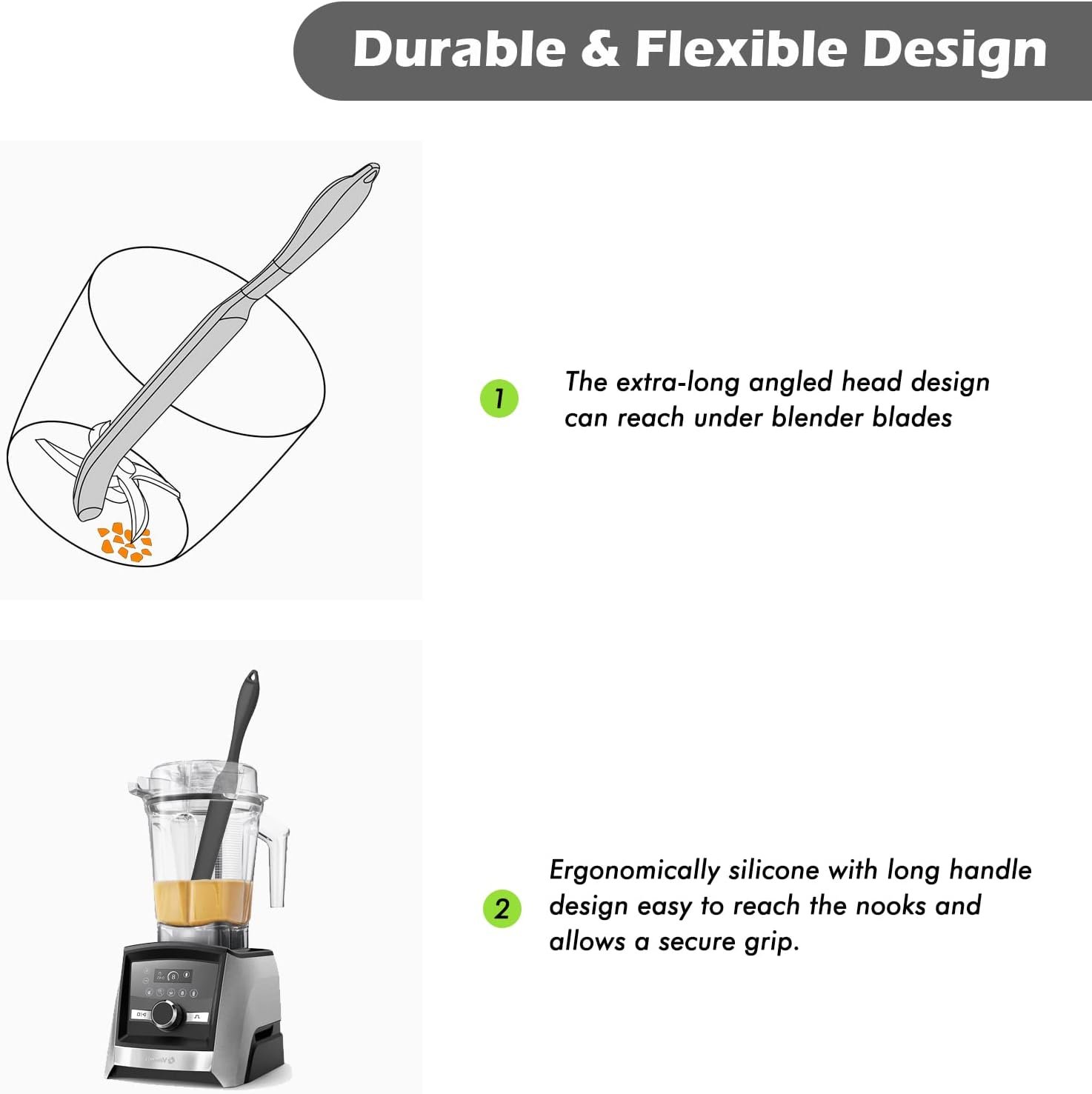 ERGONOMIC DESIGN – Our Blender scraper are designed with our customers in mind. Ergonomically silicone designed handles allows for a secure grip while allowing comfortable use.Extra long angled head reaches bottom of the blender pitcher, while conforming to the shape of the walls to scrape and remove all foods.