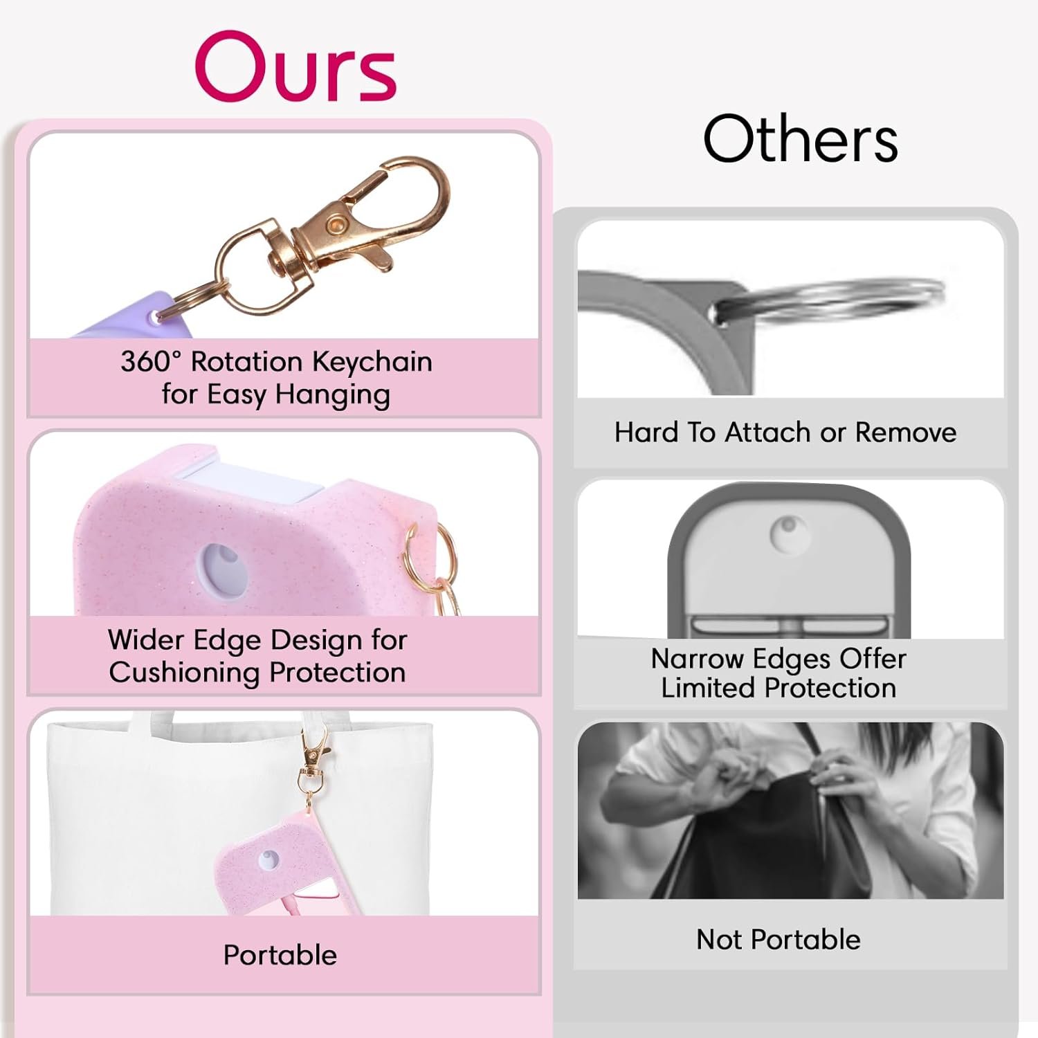 Anti-Loss Design – The protective case features a sturdy metal keychain that attaches firmly to your bag, backpack, or purse. It is easy to install and convenient to carry around, keeping your hand sanitizer always within reach.