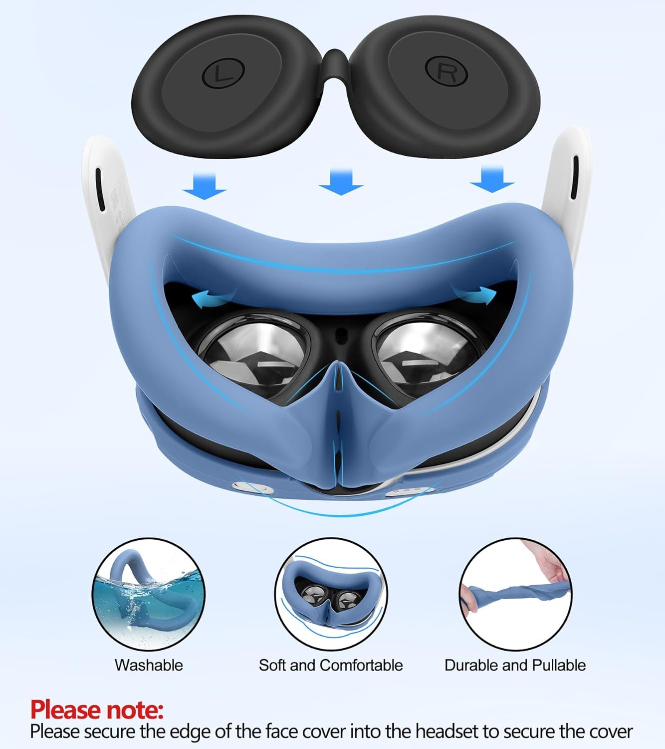 Enhanced Comfort of Face Cover: The face cover is crafted from soft, breathable rubber, it helps maintain a clean VR gaming environment by preventing sweat on your Meta Quest 3. Ensuring a comfortable and irritation-free gaming experience during long VR games.