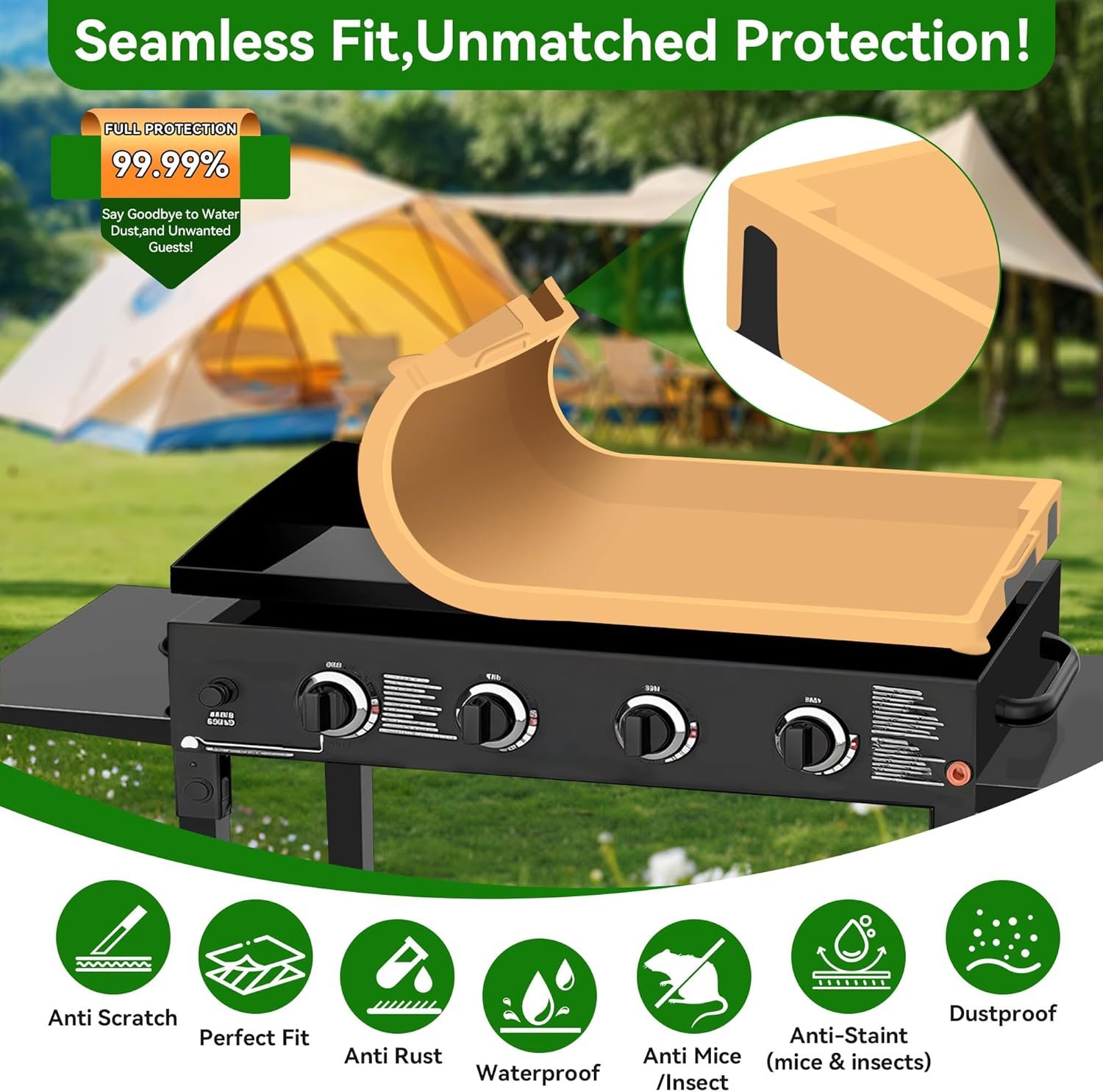 【360° Full-Protection Silicone Griddle Mat】Shield your griddle from all year nature’s relentless assault. Engineered with full-wrap silicone edges, this griddle cover forms an impenetrable barrier against rodents, insects, leaves, dust, and moisture. Unlike flimsy partial-coverage mats, our design “seals every millimeter” of your 36″ Blackstone griddle surface. Rain, snow, or pollen storms won’t penetrate – preserving your grill’s finish and preventing rust corrosion for years.