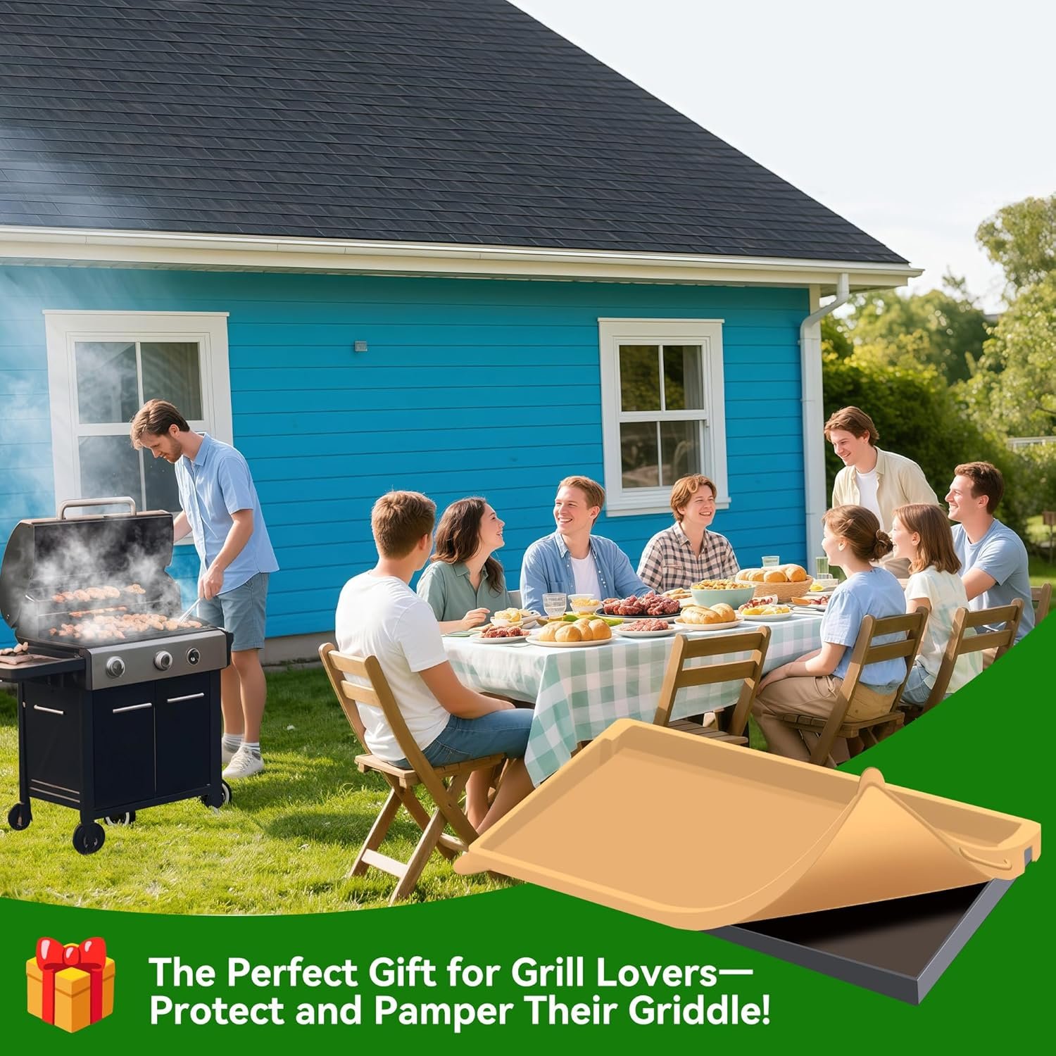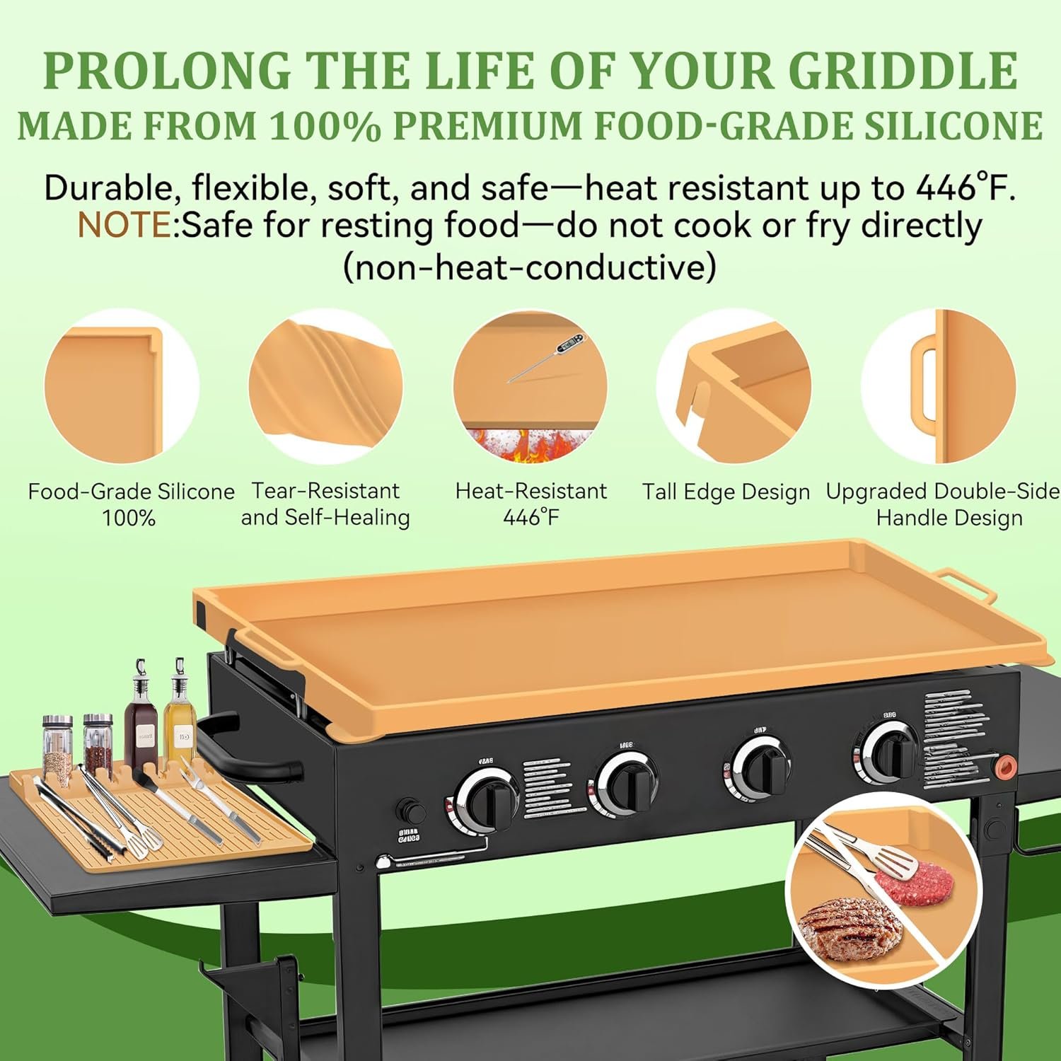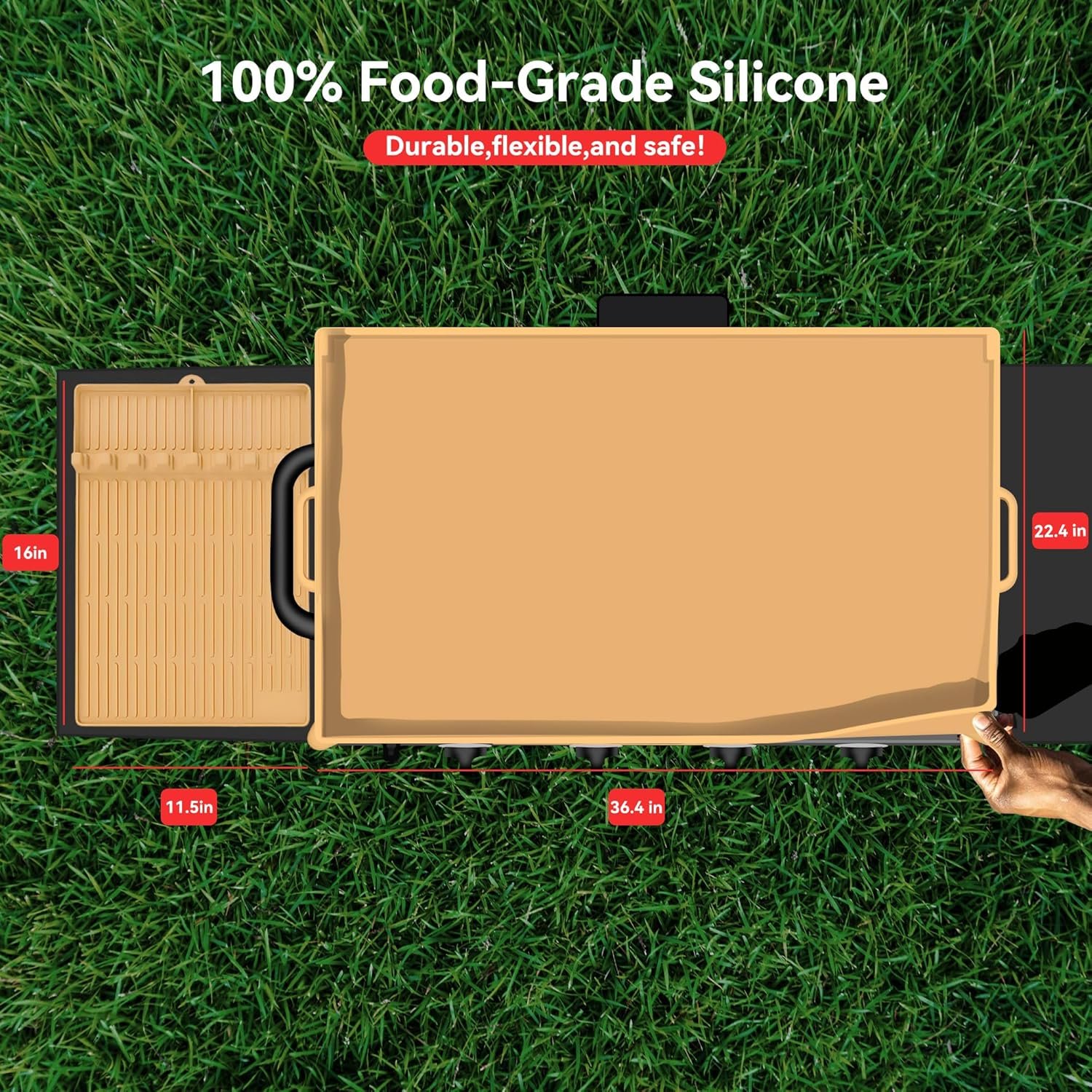 【Food Grade Griddle Cover Mat】The griddle mat made from heavy-duty food-grade silicone, Rigorously tested to: Resist extreme temperatures (-104°F to 446°F) ; Reject toxic leaching (BPA/phthalate-free) ; Prevent bacterial absorption (non-porous surface).