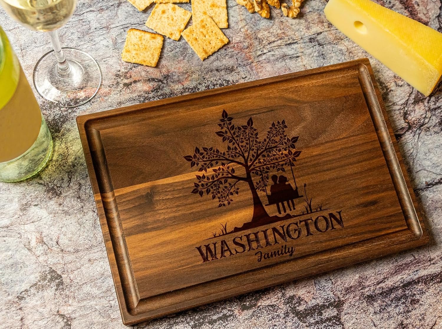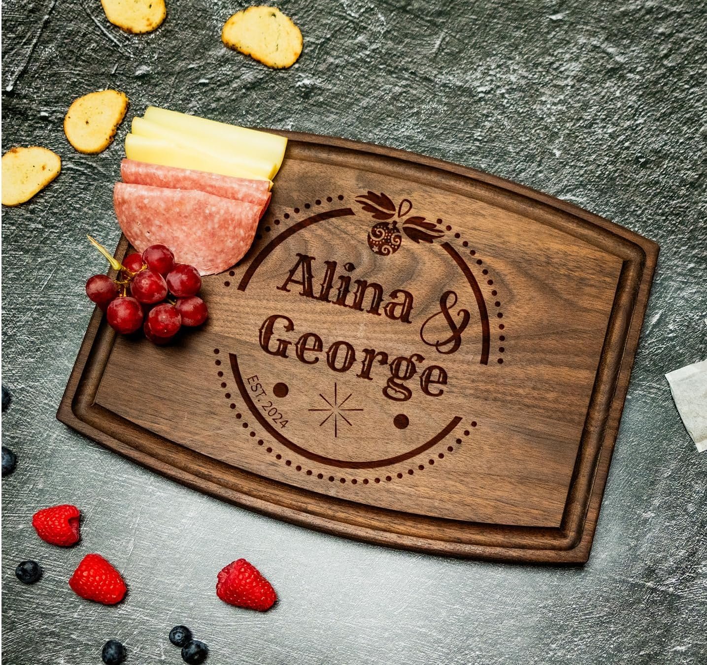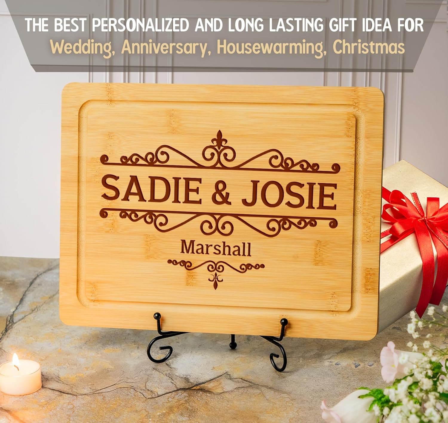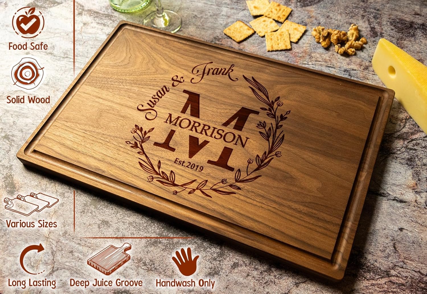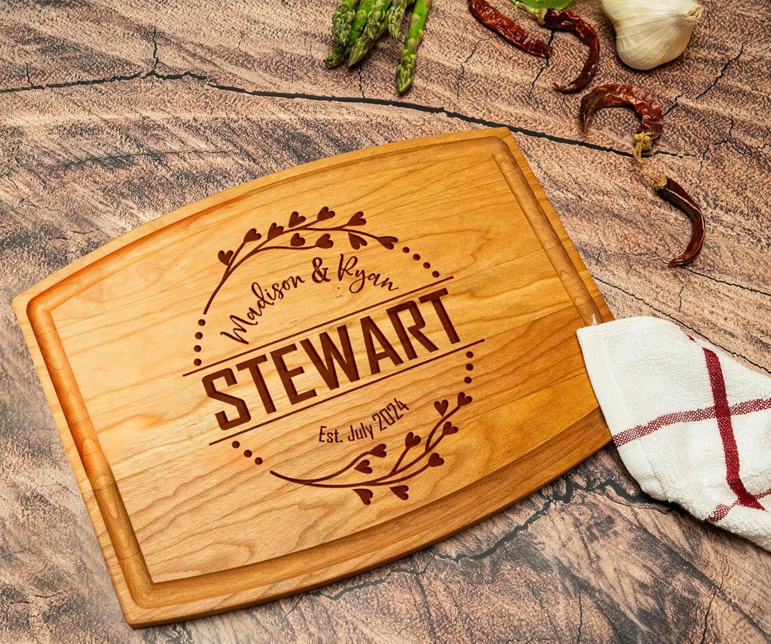Practical Elegance: Our wood-cutting board not only enhances the kitchen but also symbolizes love and commitment, making it an ideal gift for weddings, anniversaries, and festive celebrations.