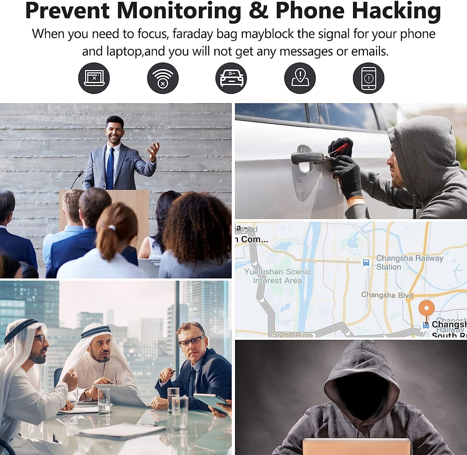 STRONG SIGNAL SHIELDING EFFECT – SIMKET Faraday bag consists of a double layer super shielded metal fiber.It can block all types of signals: WiFi, Bluetooth, RFID, GPS, cell phone jammers, including car key signals, SMS, and NFC, blocking effect can reach 100%