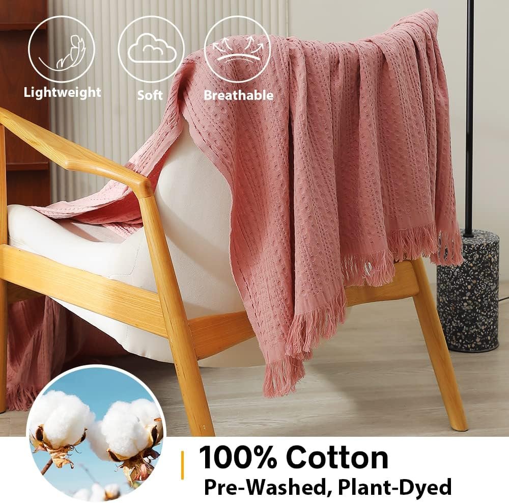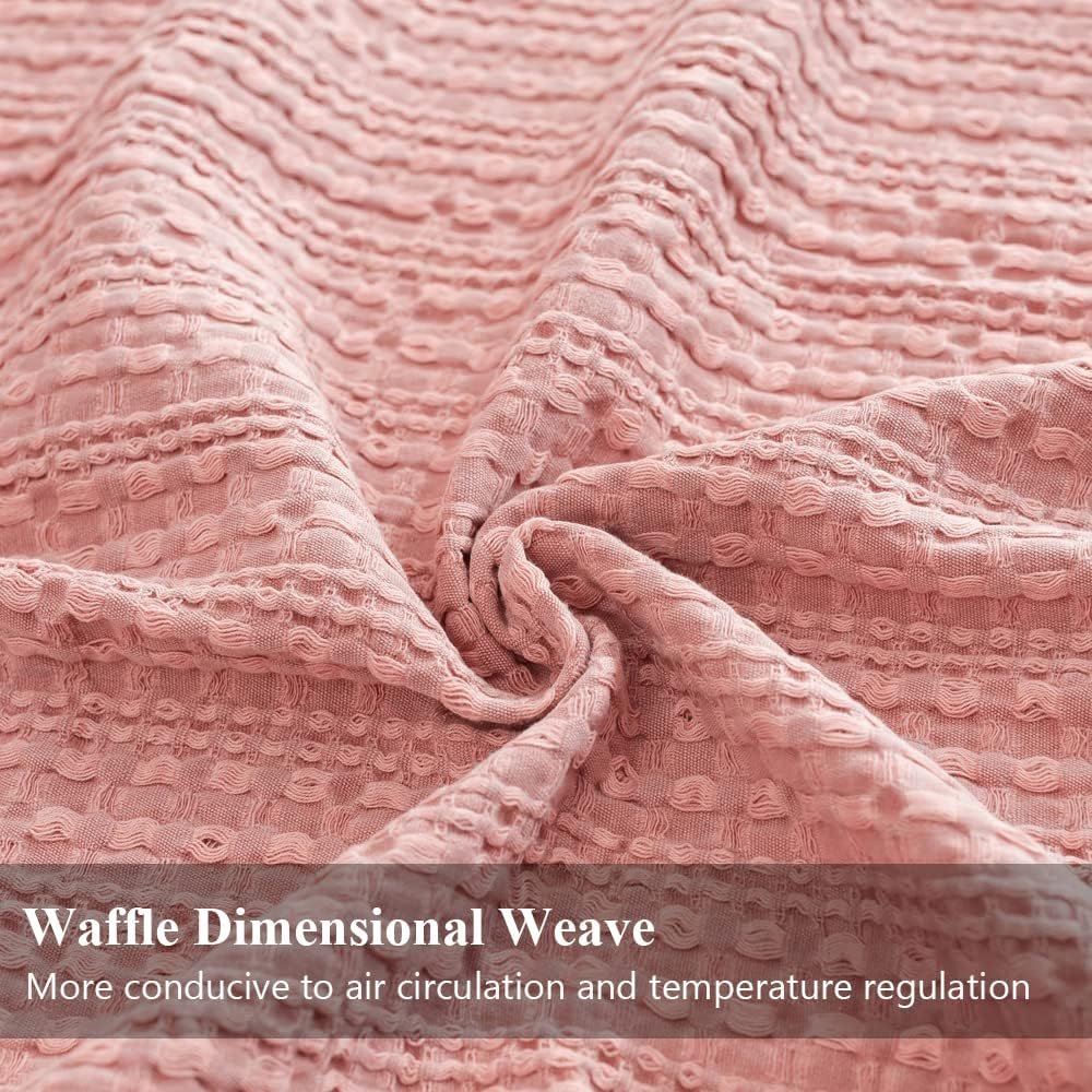 [Classic Waffle Weave Design]: Exquisite Waffle Design features three-dimensional, puffy and elegant appearance, which is one of our favorite trends for the season. the springy texture can complement any décor. Meanwhile the special waffle weave helps with air circulation and enhance the breathability of the blanket. Skilfully crafted design and rolled fringed edges for a beautiful finish that won’t unravel in the wash.