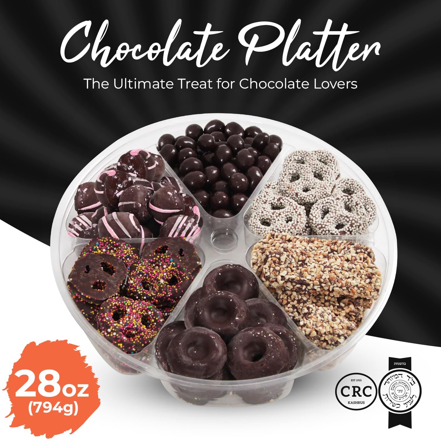 Premium Chocolate Purim Basket Mishloach Manot: Indulge in the presentation of chocolates with the SizGit chocolate gift box, carefully designed in a 28oz size with a beautifully arranged 6 sectional platter that separates each variety for freshness and ease of serving. Whether you are celebrating milestones or simply enjoying a moment of indulgence, this chocolate gift is created to impress in both taste and appearance.